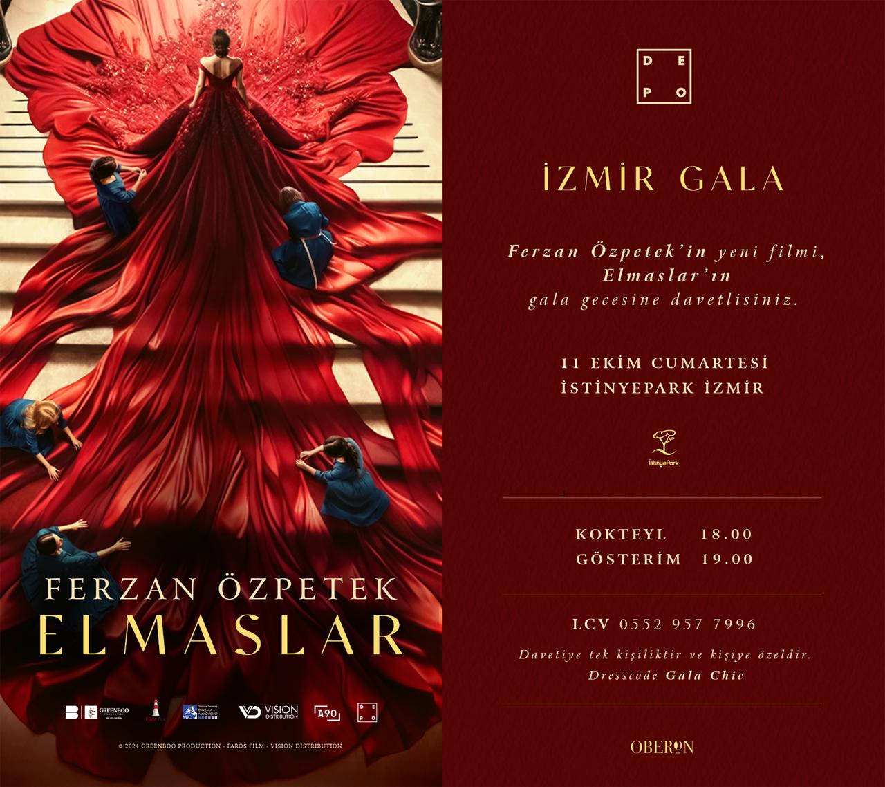 EGEMENLİK - Birbirinden farklı filmlere ev sahipliği yapan İzmir İstinyePark Teras Renk Sineması, bu kez de dünyaca ünlü yönetmen Ferzan Özpetek’in İtalya’da rekorlar kıran filmini sinemaseverlerle buluşturdu.Aralık 2024’te İtalya’da vizyona giren ve kısa sürede en çok izlenen film olarak zirveye yerleşen Elmaslar (Diamanti); Almanya, İngiltere, İspanya, Portekiz, Fransa, Amerika, Avustralya ve Japonya dâhil olmak üzere 63 ülkeye satıldı, İtalya’da 2,6 milyonun üzerinde seyirciyle rekor kırdı ve eleştirmenlerden tam not aldı.Şimdi de ilk kez İzmir’de izleyicilerle buluşan film, 11 Ekim’de İzmir İstinyePark Teras Renk Sineması’nda düzenlenen galasıyla, sanat ve sinema dünyasından pek çok ismi bir araya getirdi. İzleyicilerin yoğun ilgi gösterdiği gecede Ferzan Özpetek de galaya katılım sağladı. ÖDÜLLÜ FİLM ELMASLAR İZMİR’DE VİZYONA GİRDİUsta yönetmen Ferzan Özpetek’in katılımıyla gerçekleşen galaya İzmir’in iş, sanat ve cemiyet hayatından pek çok seçkin davetli katıldı. Türkiye hakları DEPO Film’e ait olan, usta yönetmen Ferzan Özpetek’in yeni filmi Elmaslar tüm Türkiye’de vizyona girdi. Vizyon öncesi İstanbul’da gerçekleştirilen galanın ardından, İzmir galası İzmir İstinyePark Teras Renk Sineması’nda gerçekleştirildi.İzmir cemiyet hayatından, iş ve sanat dünyasından pek çok seçkin konuğun katıldığı geceye basının ilgisi de yoğun oldu. Kalabalık bir davetli topluluğunun katılımıyla gerçekleşen gecede, İzmir İstinyePark Teras Renk Sinemasının 6 salonu da tam anlamıyla doldu. Ferzan Özpetek’in salonları gezerek konukları selamladığı gece, gösterim sonrası Beymen İzmir İstinyePark ev sahipliğinde gerçekleştirilen özel bir kutlama ile devam etti.İtalya’da 2 milyon 600 bin seyirciye ulaşarak büyük gişe başarısı elde eden Elmaslar, İstanbul’da olduğu gibi, İzmir’deki özel gösterim sonrasında da konuklar tarafından beğeni yağmuruna tutuldu. Beymen’deki kutlamada Ferzan Özpetek ile bir araya gelen misafirler usta yönetmeni tebrik etti.