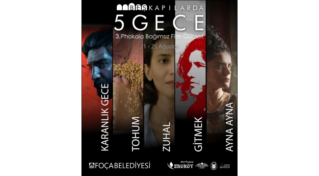 Foça Belediyesi’nin destekleri, Yönetmen Hüseyin Karabey ile sinema ve dizi oyuncusu Gizem Erman Soysaldı’nın Sanat Yönetmenliğini yaptıkları “Beşkapılarda 5 Gece” Phokaia Bağımsız Film Günleri, bu yıl da çok özel bir seçki ile sinemaseverlerle buluşacak.