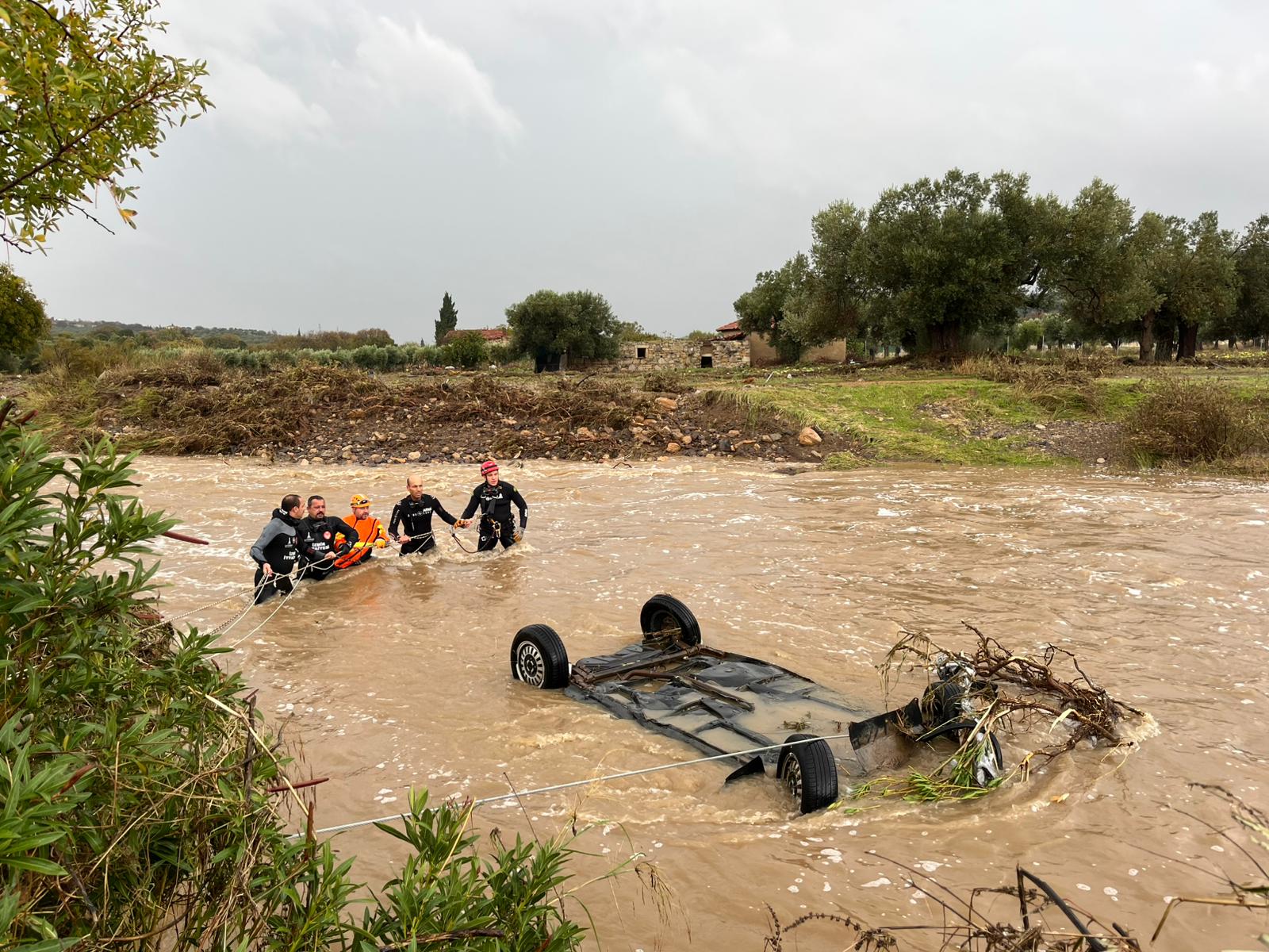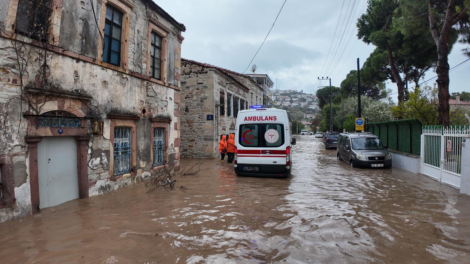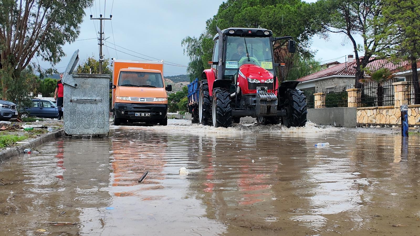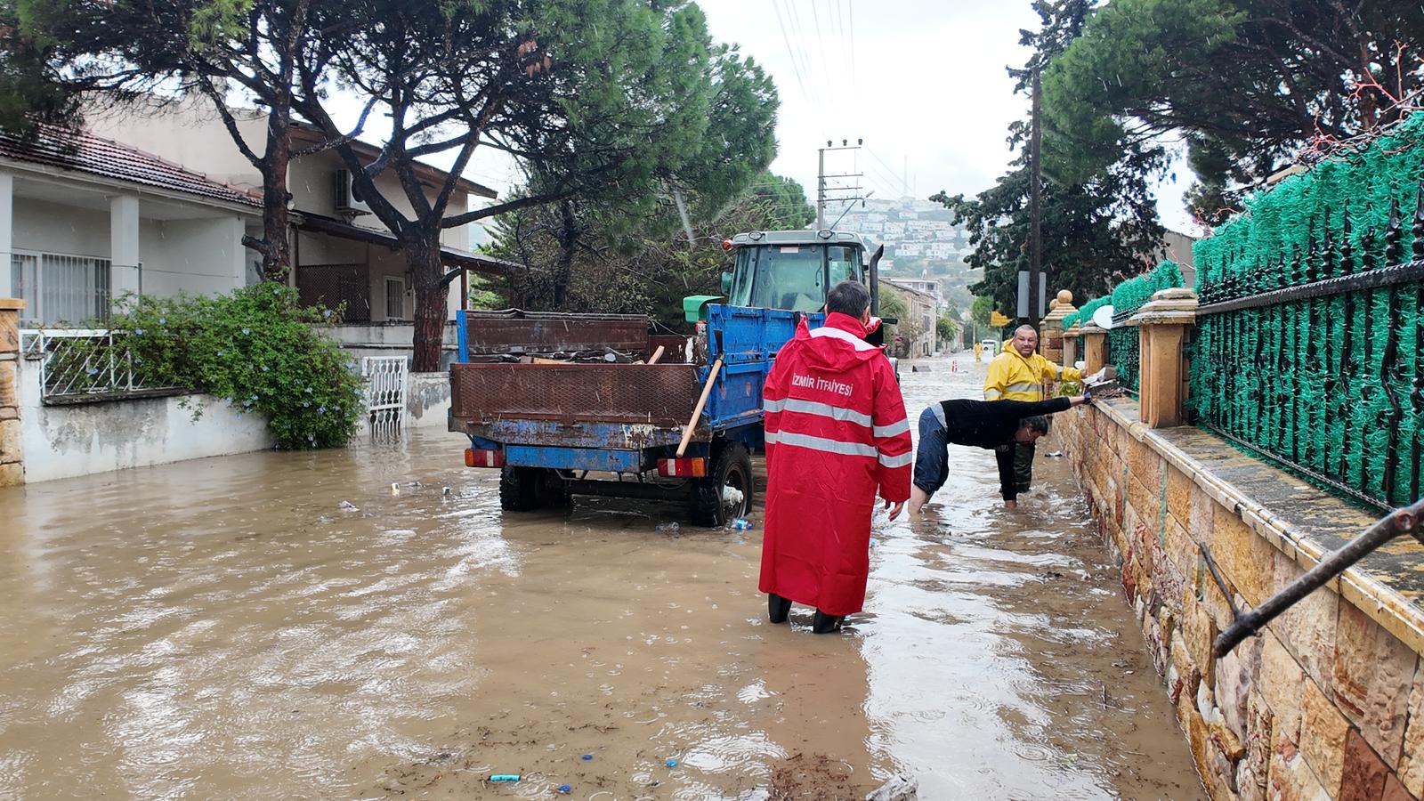 İzmir’de uzun süredir beklenen yağışlar özellikle Foça, Aliağa, Dikili, Menemen ve Karaburun ilçelerinde etkili oldu. Sadece birkaç saat içinde metrekareye 154.4 kg yağış düşen Foça’da yaşam olumsuz etkilendi. Deniz seviyesinin de yükselmesi nedeniyle yaşanan su baskınlarına İzmir İtfaiyesi, İZSU ve Foça Belediyesi ekipleri müdahale etti. Bölgede yaşamın normale dönmesi için İzmir Büyükşehir Belediyesi toplam 192 araç ve 350 personelle çalışmalarını sürdürüyor.
