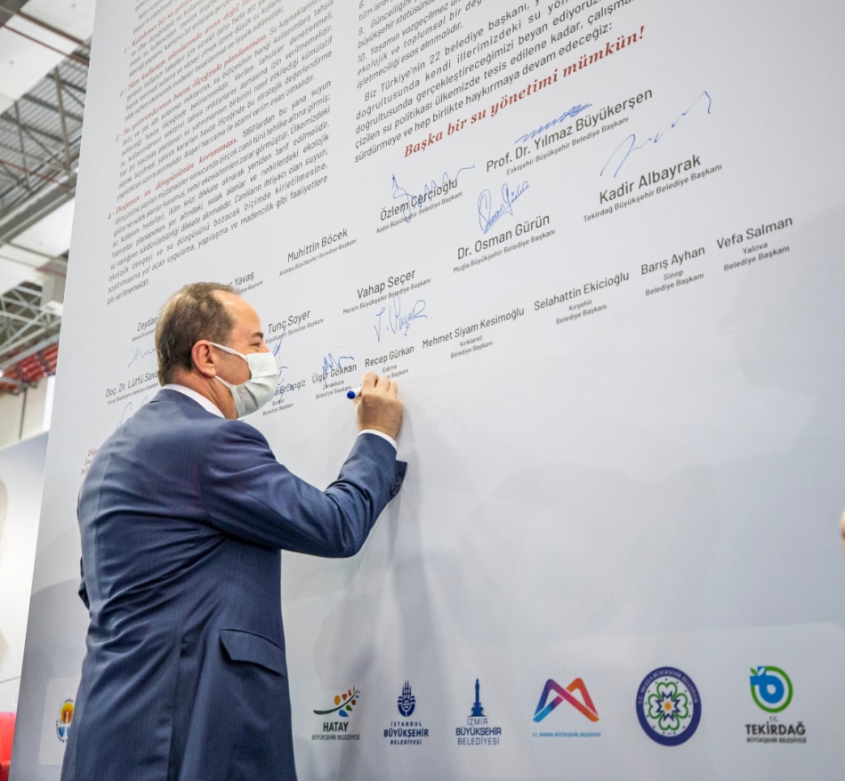 İzmir’de bir araya gelen CHP’li belediye başkanları “Başka bir su yönetimi mümkün!” dedi. Başkanlar uymayı taahhüt ettikleri su politikasını, 22 Mart Dünya Su Günü’nde bir manifestoyla açıkladı. Manifesto, zirvenin ev sahibi İzmir Büyükşehir Belediye Başkanı Tunç Soyer tarafından okundu.