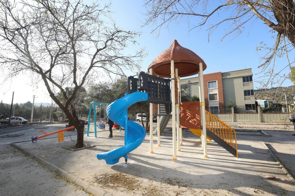 Gaziemir Belediyesi, Şehit Hüseyin Şele Parkı, Şehit Ünsal Yaman Parkı, Rafet Şenbaydur Parkı ve Irmak Mahallesi’nde yapımı devam eden parka oyun grupları yerleştiriyor.