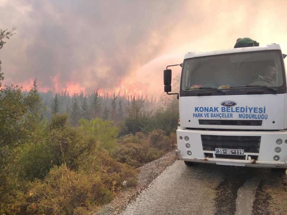Konak Belediye Başkanı Abdül Batur, Bodrum Belediyesi’nden gelen talep üzerine belediyeye ait su tankeri ve arazide kullanılabilecek araçları yangın bölgesine gönderdi.
