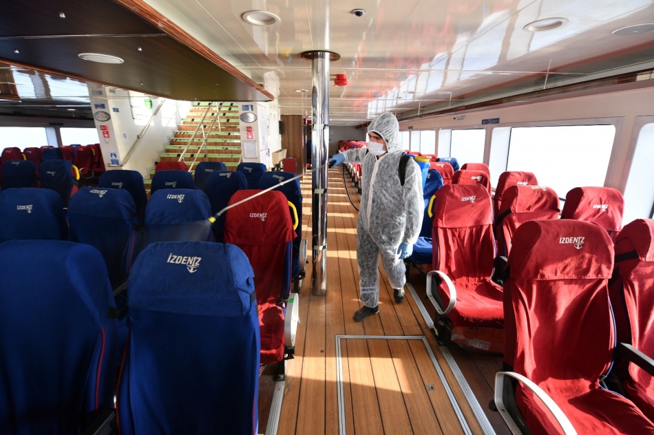 İzmir Büyükşehir Belediyesi 2 Mart’ta başlayan ‘kontrollü normalleşme’ süreciyle birlikte toplu ulaşım araçlarındaki temizlik ve hijyen çalışmalarını sıklaştırdı. Otobüslerde, gemilerde, metro ve tramvay araçlarında; insan ve çevre sağlığına zararı bulunmayan su bazlı temizlik ürünleri ile gün boyu aksatılmadan yapılan dezenfeksiyon çalışmaları, pandemiyle mücadele kapsamında aylardır titizlikle sürdürülüyor.