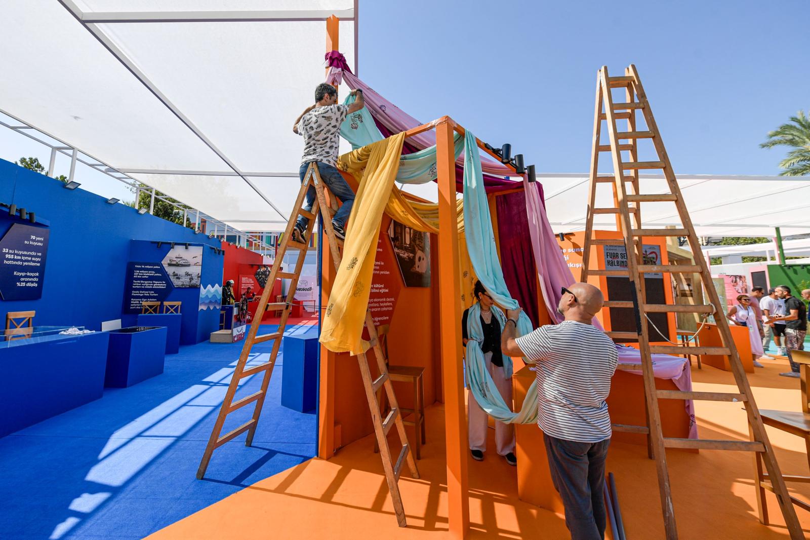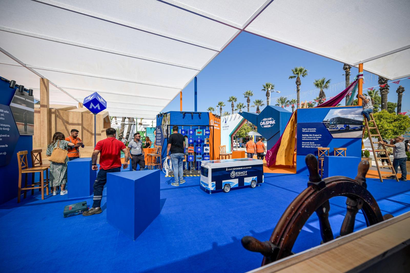 “Sürpriz hediyeler olacak”İzmir Büyükşehir Belediyesi Basın, Yayın ve Halkla İlişkiler Dairesi Başkanı Eylem Başar Yıldırım ve Basın, Yayın ve Tanıtım Şube Müdürü Cem Kaya da Belediye Sokağı’ndaki son hazırlıklara eşlik etti. Alanda sunulacak hizmetlere değinen Cem Kaya, “Her yıl olduğu gibi bu yıl da İzmir Büyükşehir Belediyesi Sokağı’nda hem belediye birimlerimizin faaliyetlerini tanıtacağız hem de misafirlerimize konser, tiyatro, bilgi yarışması gibi etkinlikler düzenleyeceğiz. Alanda çocuklarımız için eğitici ve öğretici etkinlikler de gerçekleştireceğiz. Bu yıl ilk kez ‘Ne kadar İzmirlisin’ başlıklı bilgi yarışması düzenliyoruz. Kazanan vatandaşlarımıza sürpriz hediyelerimiz olacak. Bütün vatandaşlarımızı hem belediye olarak faaliyetlerimizi tanımak hem de güzel vakit geçirmek için İzmir Büyükşehir Belediyesi Sokağı’na bekliyoruz” dedi.Kültür Sanat alanı renkliİzmir Büyükşehir Belediyesi Sokağı’nda “Kültür Sanat” başlığı altında Basmane’de Yeniden Basma Atölyesi Projesi tanıtılacak. Ayrıca “Sokakta Kültür Var” kitaplı bilgi yarışması, 10-14 yaş arası “APİKAM ile İzmir’i Tanıyoruz” bilgi yarışması, seramik, heykel, çanta boyama, kolaj, kintsugi, mozaik yapımı gibi sanat atölyeleri, “Şef Sensin”, İzmir’in tanıtım uygulaması olan Visit İzmir’in tanıtımı gibi etkinlikler düzenlenecek. Sosyal Medya Etkileşimli Oyun da var“Sağlık” başlığında ise sağlık alanında bilgilendirme etkinlikleri, şapka, sağlık çantası, ilaç kutusu, diş bakım seti gibi hediyeler dağıtılacak, sahnede step etkinliği, Sahnede Köpek Şovu, hediye çarkı, kutu oyunu, Doğal Yaşam Parkı’nda lemur besleme ödüllü Sosyal Medya Etkileşimli Oyun gerçekleştirilecek. Alanda sportif yetenek ölçümü yapılırken, buz pisti tanıtımı da yapılarak ücretsiz bilet dağıtılacak. Çocuklar için sanat atölyeleri “Toplumsal Hizmet” başlığında Süt Kuzusu projesi kapsamında süt dağıtımı, engelli çalışmaları kapsamında sokak farkındalık etkinlikleri, eğitim destekleri kapsamında yapılan faaliyetlerin tanıtımı, çocuklar için sanat atölyeleri, Meslek Fabrikası çalışmalarından bilgilendirmeler yapılacak. Ayrıca personel aracılığıyla Kent Konseyi hakkında bilgilendirmelerde bulunulacak.VR gözlük oyunundan tarım bilgi yarışmasına“Çevre ve Sürdürülebilirlik” başlığında “Dobidob Otobüsü” etkinliği, “Geleceğe Dönüşüm” isimli VR gözlük oyunu, “Dönüşüme Evde Başla” projesi tanıtımı, “Tarım Bilgi Yarışması”, “Çocuk Fide Dikim Atölyesi”, “Mikro Yeşillik Yetiştiriciliği” bilgilendirmesi, çocuklara yönelik arıcılık hakkında interaktif etkinlik, konuklara yönelik pestisit hakkında interaktif etkinlik düzenlenecek. “Kırsal Alan Strateji Belgesi ve Köy Tasarım Rehberi” ile “İzmir Gıda Sistemi Belgesi” bilgilendirmesi ve “Gıda Güvenliğinden Gıda Egemenliğine” başlıklı söyleşi yapılacak. “Yaşam Tarzı Üzerinden Karbon Ayakizi Ölçümü”, “Sürdürülebilirlik Sponsorlukları Tanıtım Projesi”, “Kakapedia Dans Grubu” etkinliği de “Çevre ve Sürdürülebilirlik” başlığında gerçekleştirilecek etkinlikler arasında yer alıyor. Magnet dağıtımının da yapılacağı alanda ayrıca “Ges Projeleri / Yenilenebilir Enerji Projeleri”, “İZETAŞ Elektrik Tedariki”, “Enerji Yöneticiliği, Enerji Hizmetleri Danışmanlığı” alanlarında eğitimler de verilecek. Sanal gerçeklik yangın söndürme simülasyonu“Afet, Acil Durum ve Güvenlik” başlığında VR gözlükle sanal gerçeklik yangın söndürme simülasyonu, çocuklar için lazerli yangın söndürme simülasyon cihazı, sismik akustik dinleme cihazı ve termal kamera etkinlikleri yapılacak. Ödemiş’teki orman yangınları sonrası bölgede yaşayan çocuklar tarafından İzmir İtfaiyesi’ne gönderilen 11 adet mektup ve çizimleri de bu kapsamda sergilenecek. Zabıta hizmetlerinin tanıtımının da yapılacağı alanda, zabıtaların teçhizatları görücüye çıkacak. Ulaşım alanı da eğlenceli“Ulaşım” başlığı altında katılımcıların ESHOT temalı parçaları tamamlayarak yarıştığı “Puzzle Oyunu”, İzmir’e özgü otobüs görselleriyle düzenlenen “Eşleştirme-Hafıza Oyunu” ve duraklara dair ipuçlarından yola çıkarak doğru durak tahmininin yapıldığı “Durak Tahmin Etme Oyunu” düzenlenecek. Alanda nazar boncuğu mavisi otobüs de sergilenecek. “Geçmişten Günümüze Gezici ESHOT Sergisi” açılarak, “Dinamik Şarjlı Elektrikli Otobüs Projesi” tanıtımı da yapılacak. İzmir Metrosu ile Karşıyaka, Konak ve Çiğli Tramvayları tanıtımı, durak haritası çizimi, hediyelik dağıtımı gibi etkinlikler yine bu bölümde olacak. Ulaşım bölümünde İZBAN Aliağa-Selçuk hattı, artı para sistemi, aktarmalar, istasyonlar, yolcu asistanı aplikasyonu ile ilgili genel bilgi paylaşımında bulunulacak. Bölümde İZDENİZ’in çocuklara yönelik pet şişeden gemi yapımı, gemi temalı fotoğraf çekimi de düzenlenecek. “Ulaşım” alanında İZELMAN otoparkları bilgilendirmesi, VR gözlük ile araç park etme etkinliği gerçekleştirilecek. Ayrıca İzmir Sürdürülebilir Kentsel Ulaşım Planı (SKUP İZMİR-SUMP İZMİR) tanıtılacak.