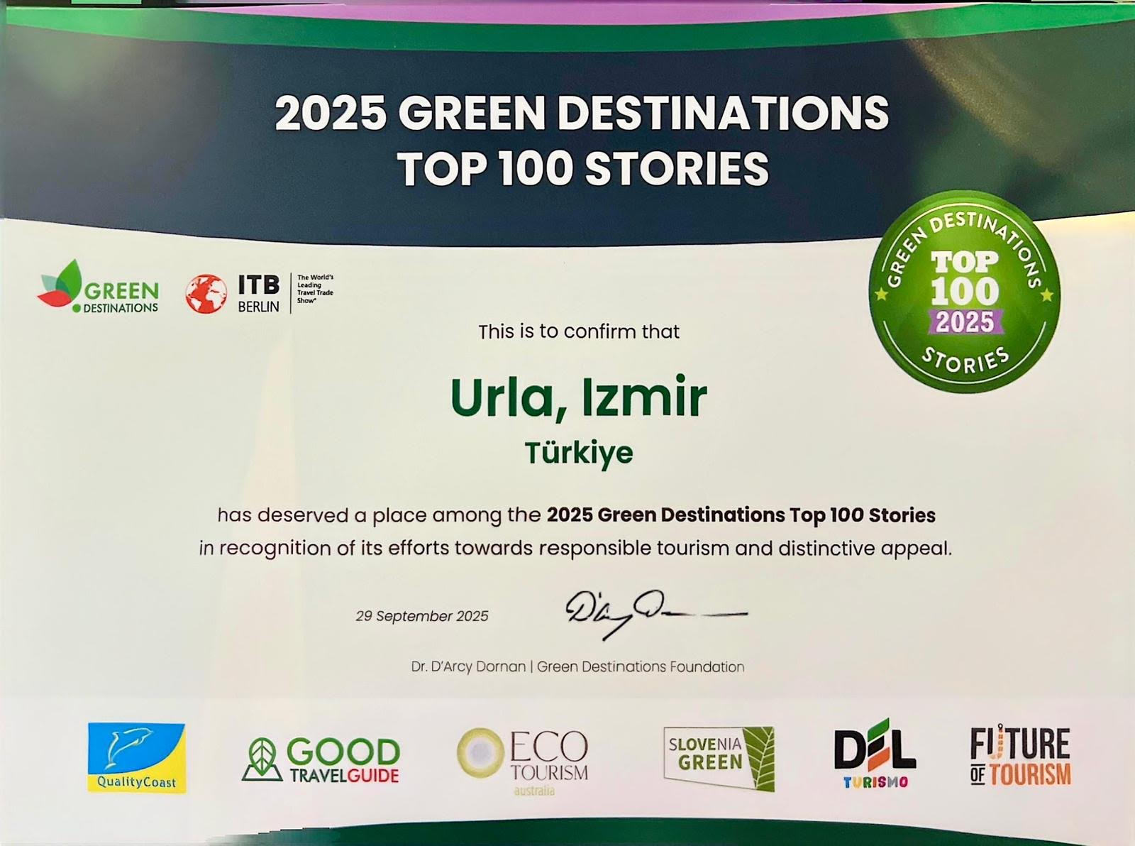 Gastrofarm Urla, sürdürülebilir turizm alanında dünyanın en prestijli organizasyonlarından biri olan Green Destinations En İyi 100 Hikaye listesine girdi.