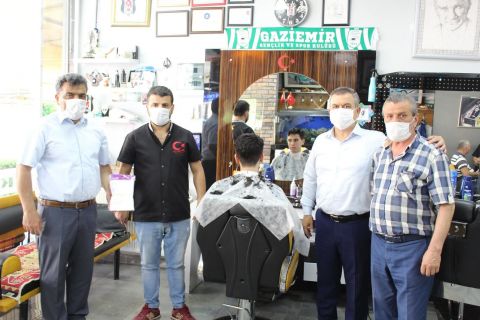 Berber ve kuaförlere, maske, eldiven ile tek kullanımlık önlüklerden oluşan hijyen kitlerini dağıtan oda yöneticileri şunları söyledi: ‘Corona virüs (kovid-19) ile mücadelemiz sürecek. Normalleşme sürecinde şartlara göre çalışmaya başlayacak diğer meslek kollarındaki üyelerimize de destek vereceğiz. Esnaf sanatkarlar toplumun içinde yaşayan, halkın önemli parçasını oluşturan insanlardır. Dolayısıyla üyelerimiz için halkın sağlığı önceliklidir. Bizim için tüketiciler her şeyden önce dostlarımız, akrabalarımız, tanıdıklarımızdır. Titizlikle hijyene dikkat ederek hizmet vermeye devam edeceğiz. Gaziemir halkı da alışverişlerinde esnaf kesimini tercih etmeli.’