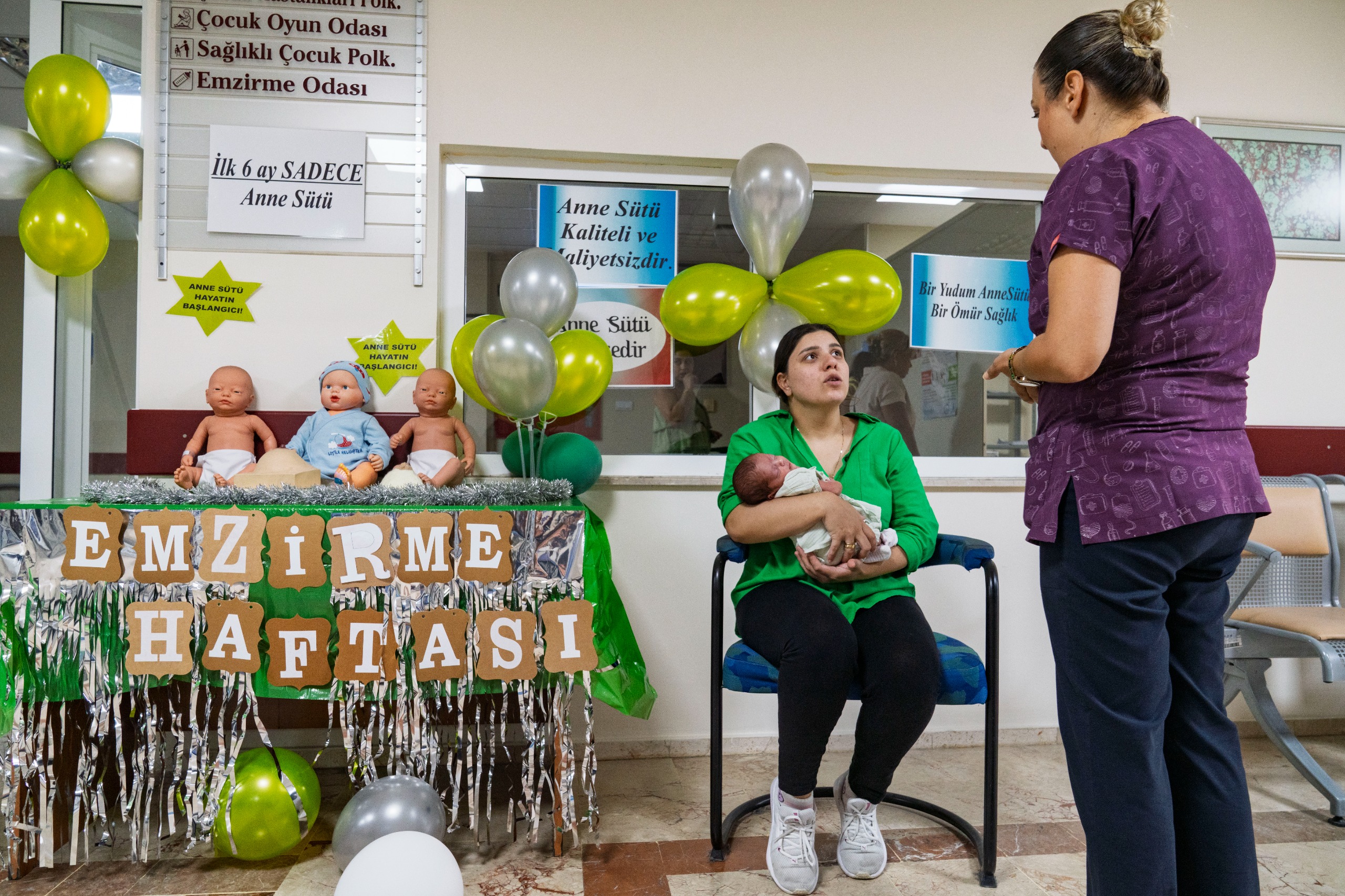 Emzirme Haftası’nda farkındalık eğitimleriEşrefpaşa Hastanesi Çocuk Sağlığı ve Hastalıkları Polikliniği’nde ise Emzirme Haftası nedeniyle stant kurularak annelere anne sütünün önemi ve emzirme teknikleri konusunda eğitimler verildi. Çocuk Sağlığı ve Hastalıkları Uzmanı Dr. Mete Sivrikaya, “Burada hastalarımıza hem tetkik ve tedavi hem de eğitim ve koruyucu hekimlik hizmeti veriyoruz. Bunlardan biri de içinde bulunduğumuz Emzirme Haftası kapsamında verdiğimiz eğitimler oldu. Anne sütü, evrendeki en önemli maddelerden biri. Bebeklerin anne sütüne olan ihtiyaçları çok fazla. Bebekler için ilk 6 ay sadece anne sütünü öneriyoruz. Anne sütünün öneminin yanı sıra bebeğin doğru beslenmesi ve annenin bebeğini doğru emzirmesi de önemli. Standımızda hemşirelerimiz tarafından annelere bebek emzirme teknikleri anlatılıyor” sözlerine yer verdi.