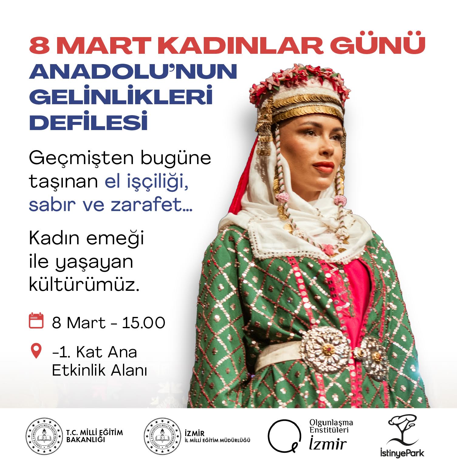 Her detayda kadın emeği…Sadece kadınların varlığını kutladığımız bir gün değil; aynı zamanda kadın emeğinin, gücünün ve toplumdaki görünürlüğünün önemini hatırladığımız anlamlı bir gün olan 8 Mart’ta İstinyePark İzmir, yıllardır kadın emeğini ve üretim gücünü ön plana çıkaran İzmir Olgunlaşma Enstitüsü ile bir araya geliyor. Bu özel günün ruhuna uygun bir şekilde kadınların tarih boyunca taşıdığı sabrı, zarafeti ve estetik anlayışı takdir ediyor ve bu özel defilede kadının üretkenliğini, sanatkârlığını ve kültürel hafızadaki yerini anlatan özel bir koleksiyonu konuklara sunuyor.“Anadolu’nun Gelinlikleri Defilesi”, geçmişten bugüne taşınan el işçiliğini, sabrı ve zarafeti izleyicilerle bir araya getirecek. İzmir Olgunlaşma Enstitüsü’nün hazırladığı Anadolu’nun Gelinlikleri Koleksiyonu’na ait 23 parça gelinlik, İstinyePark İzmir işbirliği ile 8 Mart Cumartesi günü ziyaretçilerle buluşacak.Kadın emeği ile yaşayan kültürümüzün hikayesi…Bindallılardan üç eteklere, sim sırma işlemelerden gelin başlıklarına kadar her detayın, kültürel mirasımıza duyulan saygı ve aslına sadık kalınarak hazırlandığı defile, yalnızca bir moda gösterisi değil; kadınların üretim gücünü, estetik anlayışını ve kültürel mirasa katkısını görünür kılan özel bir etkinlik olacak. Kadın emeğinin, sabrının ve kültürel hafızasının zarif yansımalarından biri olan gelinlikler, izleyicilere Anadolu’nun farklı yörelerinden geleneksel güzellikleri tanıma fırsatı sunacak.Defile - 1. Kat Ana Etkinlik Alanı’nda saat 15.00’te gerçekleştirilecek. Millî Eğitim Bakanlığı’na bağlı olarak 1961 yılında kurulan ve Milli kültür değerlerimizin araştırılması, geleneksel el sanatlarımızın yaşatılması, güncellenerek gelecek nesillere aktarılması ve arşivlenmesi amacıyla sürekli gelişen bir eğitim-öğretim kurumu olan İzmir Olgunlaşma Enstitüsü ve İstinyePark İzmir iş birliğinde gerçekleştirilecek bu özel defileyi sakın kaçırmayın! Genel