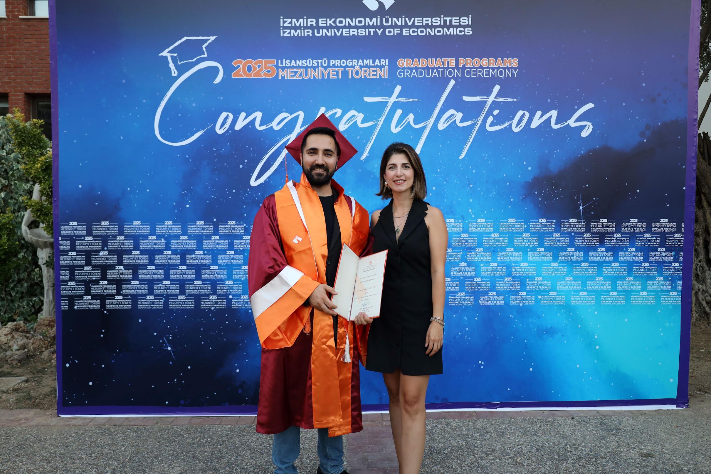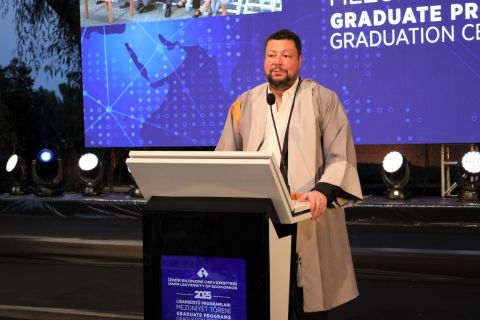 “BİLİMİ, SORUMLULUKLA KULLANMALISINIZ”İEÜ Lisansüstü Eğitim Enstitüsü Müdürü Prof. Dr. Muhittin Hakan Demir ise, lisansüstü eğitimin yalnızca akademik bir ilerleme değil, aynı zamanda zihinsel ve kişisel bir dönüşüm olduğunu vurguladı. Prof. Dr. Demir, “Mezuniyet törenleri çoğu zaman bir kapanış gibi görülür. Oysa aslında bu tören, her birinizin kendi emeğiyle açtığı yeni bir sayfanın ilk satırıdır. Aldığınız diplomalar, sadece başarılı bir şekilde tamamlanmış derslerin, teslim edilmiş bir bitirme projesi ya da tezin belgesi değildir. Aynı zamanda sabrınızın, dayanıklılığınızın ve öğrenmeye duyduğunuz bağlılığın sembolüdür. Bu diplomalar sizlere, mesleğinizde daha ileriye gitme, topluma daha güçlü katkı sunma ve bilimi sorumlulukla kullanma görevi de yüklemektedir” diye konuştu.“DEĞİŞİMİ SİZ YÖNLENDİRECEKSİNİZ” Dünyanın hızlı bir değişim içinde olduğunu söyleyerek, nitelikli eğitimin önemine dikkat çeken Prof. Dr. Demir, “İklim krizinden dijital dönüşüme, toplumsal adalet meselelerinden küresel iş birliğine kadar pek çok sorun, sizlerin bilgi ve vizyonuna ihtiyaç duyuyor. Bu nedenle, aldığınız eğitim sadece sizin kişisel başarınız değil, aynı zamanda toplumun ve insanlığın ortak kazanımıdır. Bugünden sonra sizleri, belki bir laboratuvarda, belki bir şirketin yönetiminde göreceğiz. Nerede olursanız olun; lisansüstü eğitimin özü, öğrenmeyi sürdürme iradesidir. İzmir Ekonomi Üniversitesi olarak bizler, kuruluşumuzdan bu yana çağdaş, yenilikçi ve girişimci bir vizyonu benimsedik. Amacımız yalnızca mezunlar vermek değil, dünyayı anlamaya ve dönüştürmeye aday bireyler yetiştirmektir. Dünya sürekli değişiyor, bilgi sürekli yenileniyor. Sizlerin de bu değişime uyum sağlayan değil, değişimi yönlendiren bireyler olacağınıza inanıyoruz” dedi.