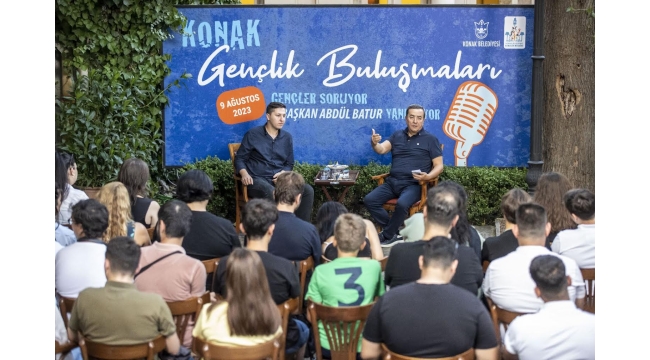 Konak Belediye Başkanı Abdül Batur, Konak Belediyesi Gençlik Meclisi’nin Basmane Semt Merkezinde düzenlediği Konak Gençlik Buluşmasına konuk oldu. Gençlik Meclisi üyesi Buğra Kızılkara’nın sunuculuğunu üstlendiği programa 15-29 yaş aralığındaki gençler karılarak merak ettikleri soruları Başkan Batur’a yüz yüze sorma fırsatı buldu. Tüm soruları samimiyetle ve tüm açıklığıyla yanıtlayan Başkan Batur, gençlerle keyifli bir sohbete imza attı. Başkan Batur’un, kentsel dönüşümden genç istihdama, siyasi ve mesleki kariyerinden özel yaşamına dair gelen tüm soruları cevapladığı, canlı yayınlanan programda sosyal medyadan gelen sorular da yanıt buldu.