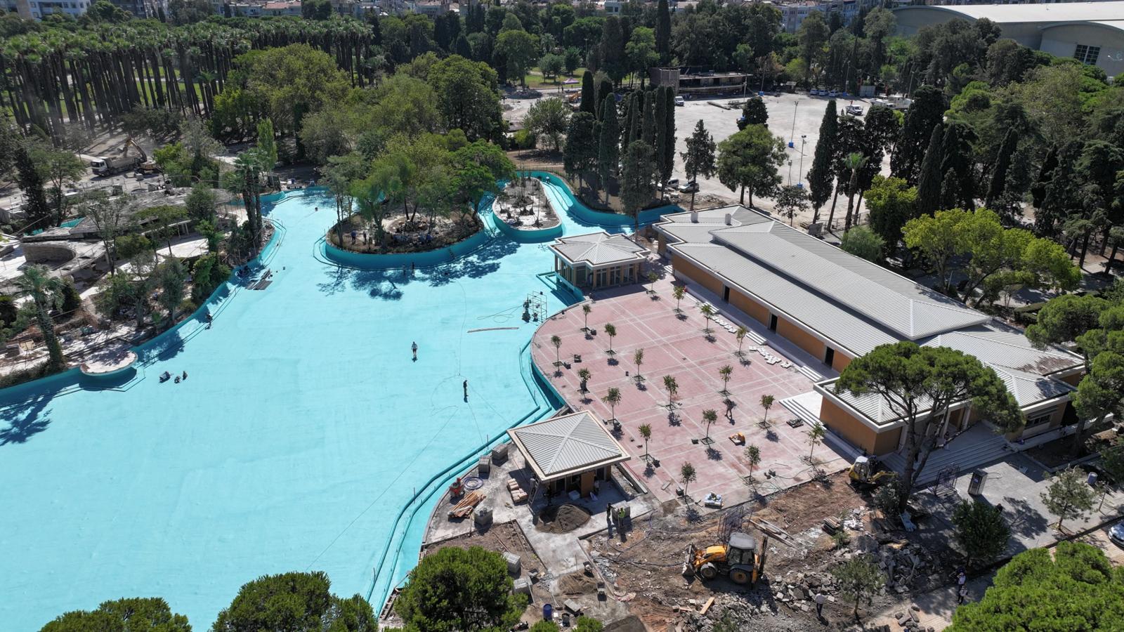 EGEMENLİK - İzmir Büyükşehir Belediyesi, sahnesinde ağırladığı sayısız sanatçı, doğa içindeki eşsiz yapısı ve unutulmaz anılarıyla kent ve ülke tarihinde iz bırakan Kültürpark Göl Gazinosu’nu yeniden İzmirlilerle buluşturmak için gün sayıyor. İzmir 1 Numaralı Kültür Varlıklarını Koruma Bölge Kurulu'nun onayı alınarak İzmir Büyükşehir Belediyesi Yapı İşleri Dairesi Başkanlığı tarafından yaklaşık iki yıl önce başlatılan yenileme çalışmalarında sona gelindi. Yeniden inşa edilen Göl Gazinosu binası ve alanı tamamlayan yapay gölette son düzenlemelere geçildi. Tesis, 29 Ağustos – 9 Eylül arasında yapılacak 94. İzmir Enternasyonal Fuarı’nda (İEF) kapılarını açacak.