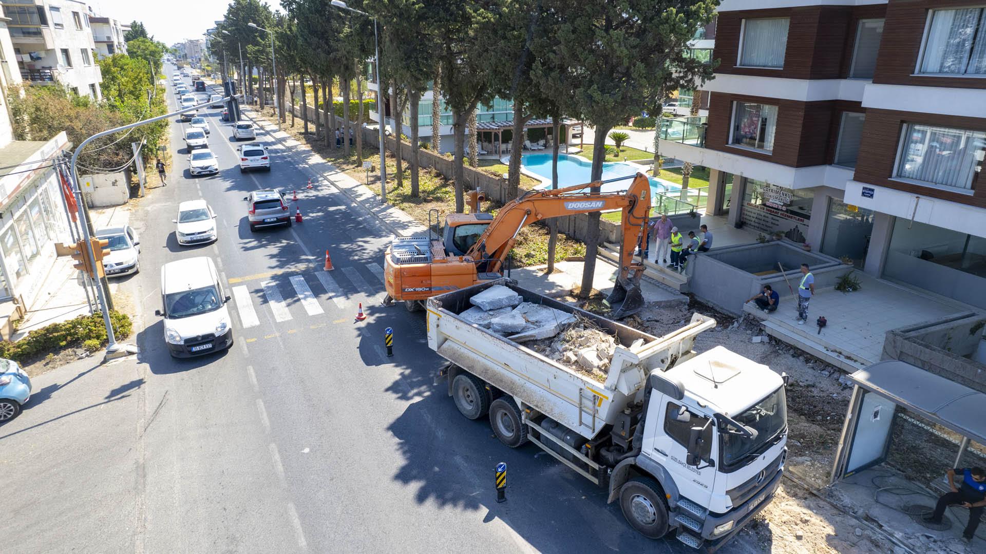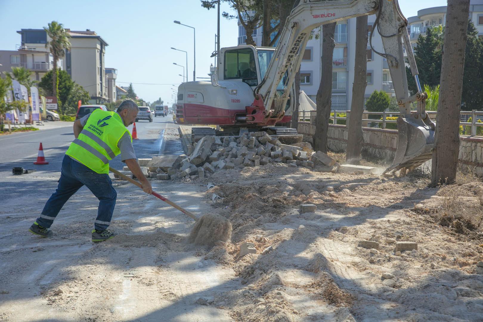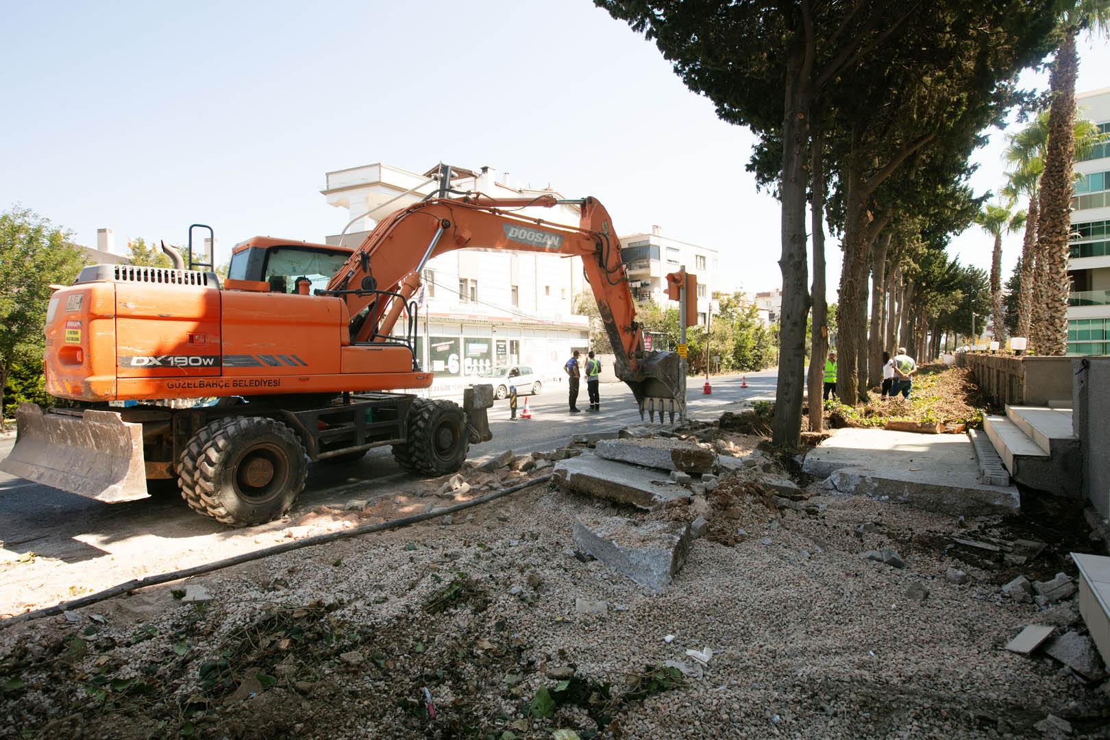 EGEMENLİK - Güzelbahçe Belediyesi, kentin önemli ana arterlerine neşteri vuruyor. Siteler Mahallesi’nin en önemli ulaşım akslarından biri olan Seferihisar Kavşağı ile Urla Çamlıçay Mahallesi arasında kalan kısım yepyeni ve vizyoner bir projeyle baştan sona yenileniyor.