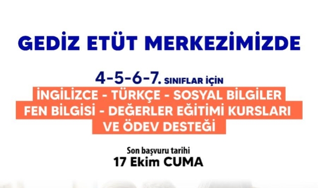 SON BAŞVURU TARİHİ 17 EKİMAlanında uzman eğitmenler eşliğinde yürütülecek kurslar, öğrencilerin okul başarılarını artırmayı, derslerdeki eksiklerini tamamlamayı ve özgüvenlerini geliştirmeyi amaçlıyor. Kurslar için son başvuru tarihi 17 Ekim Cuma günü olarak açıklanırken konuyla ilgili olarak bilgi almak isteyenler 0 232 439 10 10 (Dahili 3730 - 3731) numaralı telefon hattını arayabilecekler.