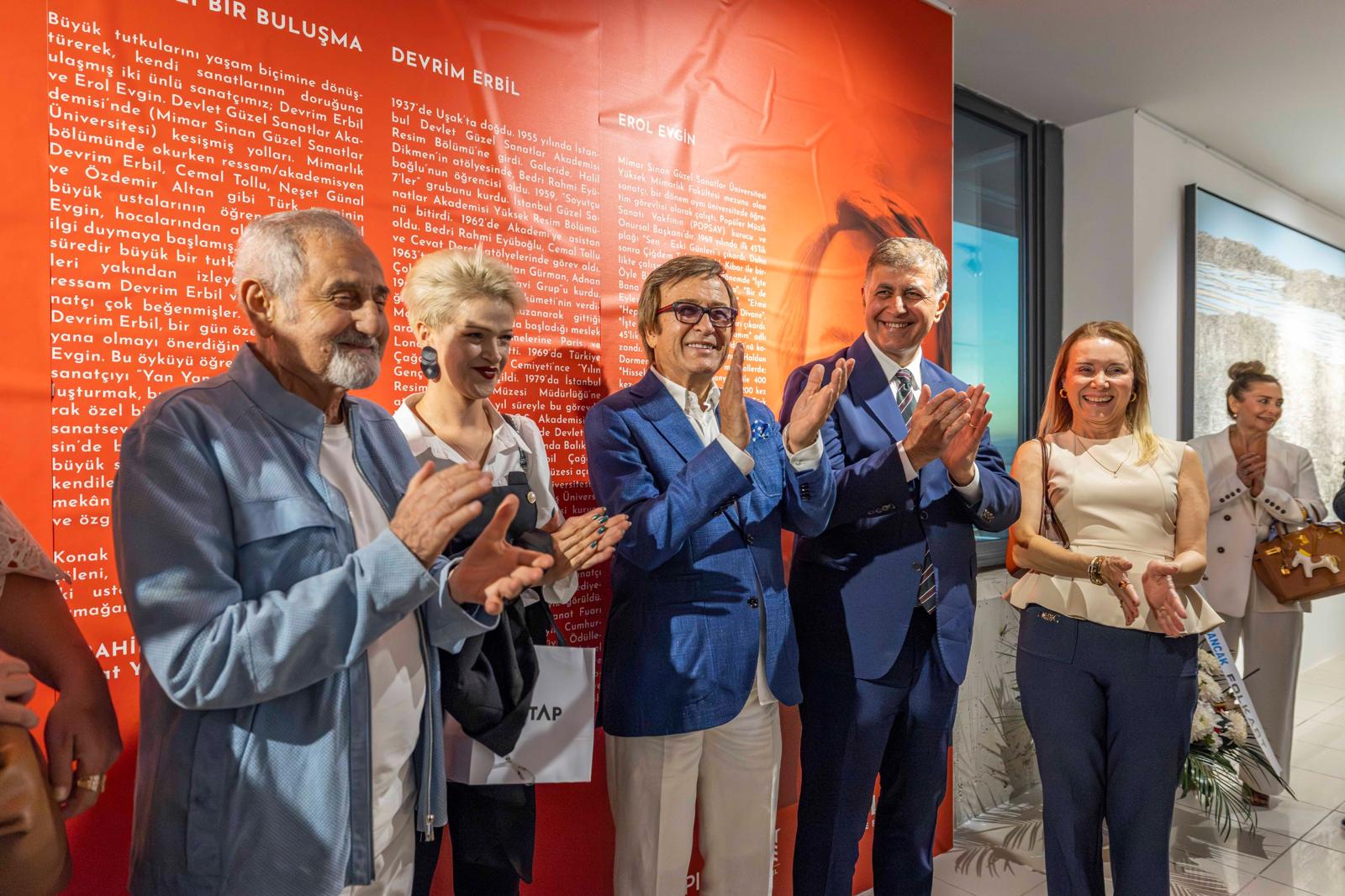 İzmir Büyükşehir Belediye Başkanı Dr. Cemil Tugay, ressam Devrim Erbil ile müzisyen-mimar-ressam Erol Evgin'i buluşturan “Yan Yana” adlı resim sergisinin açılışını yaptı. Konak Pier'deki serginin açılışında konuşan Başkan Tugay, “İzmir’in sanatçı yetiştirme yönü çok güçlü. Dünyanın her tarafında çok güzel çalışmalar yapıyorlar. O nedenle kentimiz sanatı ile de çok değerli” dedi.