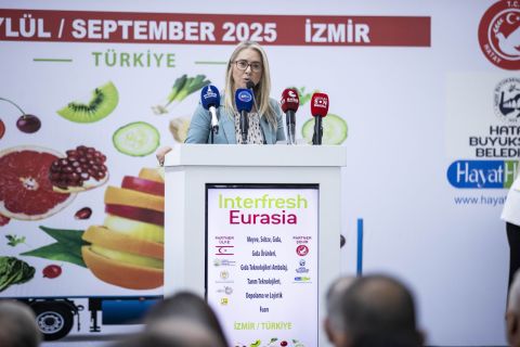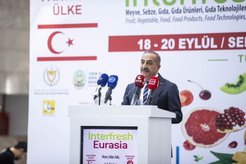 Antexpo Genel Müdürü Murat Özer ise, “Geçtiğimiz sene 54 ülkeden ziyaretçi geldi. 70'in üzerinde ülkeden ziyarete gelecek yabancı alıcılarımız olduğunu görüyoruz” dedi. Kuzey Kıbrıs Türk Cumhuriyeti Cumhurbaşkanı Ersin Tatar, fuarın açılışına video mesajla katılarak başarılı bir fuar diledi.70'in üzerinde ülkeden alıcı bekleniyorInterfresh Eurasia Fuarı; Meyve, Sebze, Depolama Ambalaj, Lojistik Fuarı olarak 2018’de Türkiye'nin meyve, sebze ihracatını artırma projesi olarak başladı. Sektörün dünyadaki vitrini haline gelen Interfresh Eurasia, bu sene 70’in üstünde ülkeden alıcıları 18-20 Eylül tarihlerinde İzmir’de buluşturuyor. Türkiye’nin ayrılmaz bir parçası olan Kuzey Kıbrıs Türk Cumhuriyeti, fuarda partner ülke oldu. Başta narenciye (portakal, mandalina, limon, greyfurt) olmak üzere domates, patatesin yanı sıra önümüzdeki yıllarda tropikal meyveler (avokado, mango, ejder meyvesi) gibi katma değeri yüksek ürünleri de teşvik ederek üretimin artırılmasıyla KKTC’ye ciddi anlamda katma değer sağlanacak. Partner şehir olarak ise Hatay fuarda yerini aldı. Dünyanın dört bir yanından gelen alıcılar, “HAYAT HATAY” projesi altında buluşuyor. Proje kapsamında 53 kadın kooperatifi ve 600 kadın üretici, 105 binden fazla ürünü hayathatay.com, zincir market stantları ve Interfresh Eurasia aracılığıyla hem Türkiye’ye hem de dünya pazarına sundu. Birçok ülkeden market zincirleri, büyük toptancılar, ithalatçılar da Interfresh Eurasia'da yer alıyor.