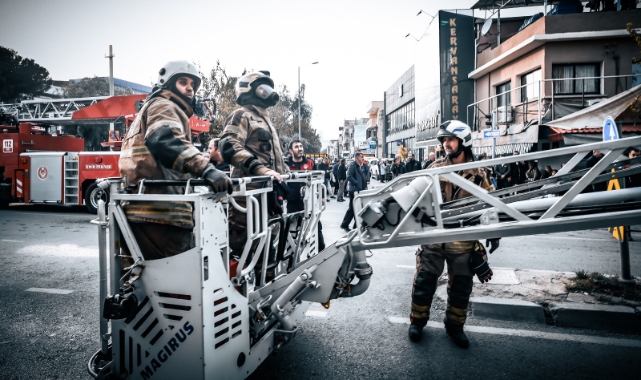 EGEMENLİK - İzmir’in Bornova ilçesine bağlı Yıldırım Beyazıt Mahallesi Fatih Caddesi üzerinde bulunan 7 katlı bir iş hanının 2. katında, 15.30 sıralarında yangın çıktı. İhbar üzerine olay yerine 12 araç ve personel ile İzmir Büyükşehir Belediyesi İtfaiye Dairesi Başkanlığı ekipleri sevk edildi. İtfaiye ekipleri, binada yaptıkları incelemede iş hanının çeşitli katlarında 12 vatandaşın mahsur kaldığını belirledi. Bir yandan arama–kurtarma, diğer yandan söndürme çalışmaları yürüten ekipler yoğun çaba sonucu vatandaşları bulundukları yerden güvenli şekilde tahliye etti. Yangın, ekiplerin müdahalesiyle yaklaşık 12 dakika içinde kontrol altına alındı. Olayda yaralanma ya da can kaybı yaşanmadı.