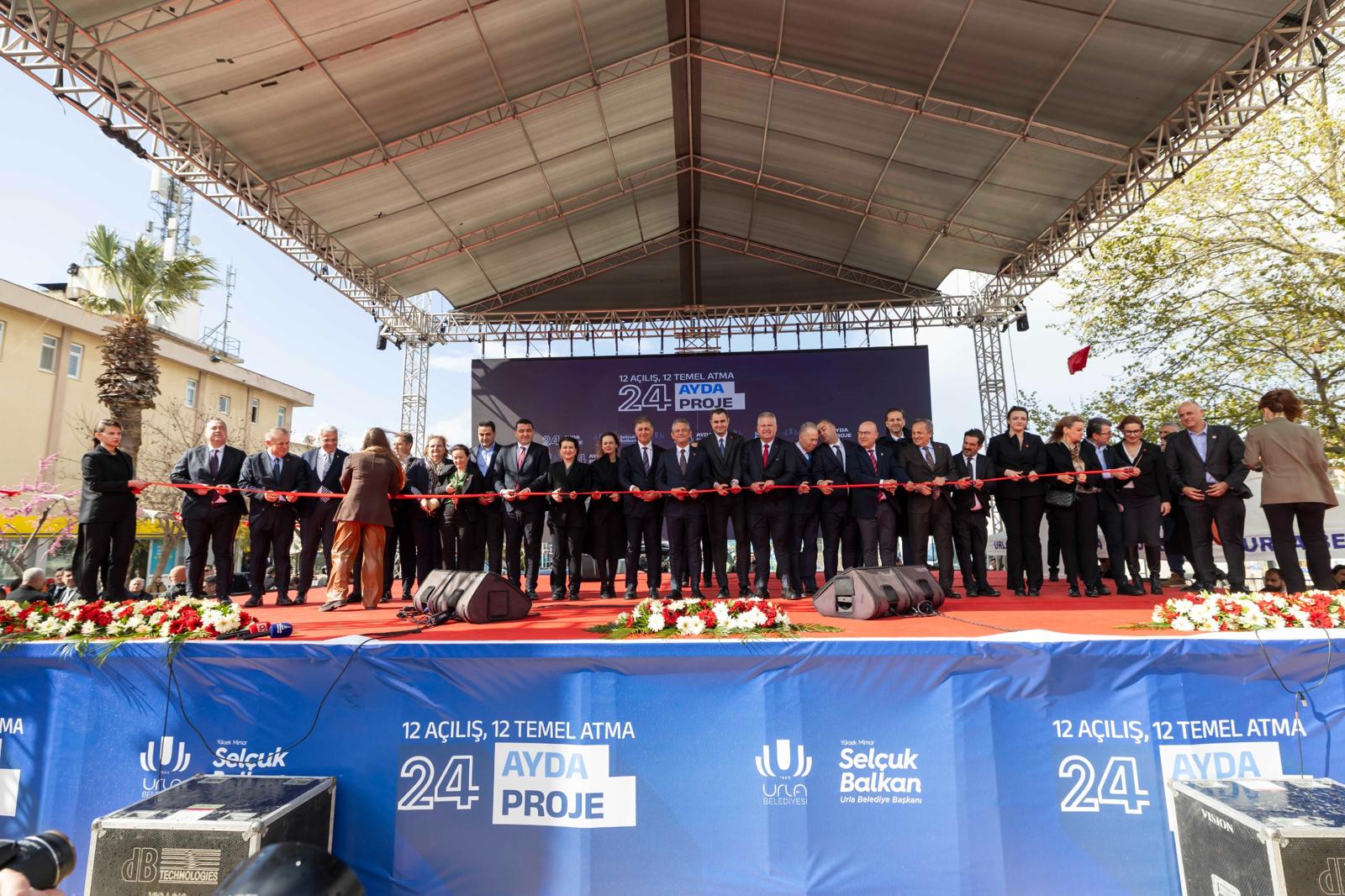 “335 milyon borçla devraldık, 53 milyon kaldı”Urla Belediye Başkanı Selçuk Balkan ise hayata geçirilen projeler hakkında bilgi verdi. Balkan, “Göreve geldiğimizde, her 5 Mayıs’ta belediye duvarına borç tablosunu asacağımıza söz verdik ve astık. Belediyeyi devraldığımızda 35 dükkanımız yıkılmıştı. Düğün salonumuz yok edilmişti. Kira gelirlerimiz sıfırlanmıştı. Market zinciri tahliye edilmiş gelir kapımız kapanmıştı. Toplamda güncel değerle 335 milyon TL borçla belediyemizi devraldık. Şu an 100 milyon lira da yatırım kredisi çekerek hem projelerimizi hayata geçirdik, hem de borçlarımızı ödedik. Şu an gururla söylüyorum ki Urla Belediyesi’nin sadece 53 milyon lira borcu kalmıştır” şeklinde konuştu.Urla’nın yeni projeleri yola çıktıKonuşmaların ardından hep birlikte kurdele kesilerek açılışlar gerçekleştirildi. Törende Urla Belediyesi tarafından yapımı tamamlanan kreş, sosyal alan, çevre düzenlemesi, kapalı pazaryeri, halı saha, semt evi, atık getirme merkezi, kıyı düzenlemesi gibi 12 projenin açılışı yapılırken, kapalı spor salonu, kültür merkezi, hayvan barınağı, otopark, sosyal merkez, mesire alanı, kreş, kıyı ve çevre düzenlemeleri gibi 13 projenin ise temeli atıldı.