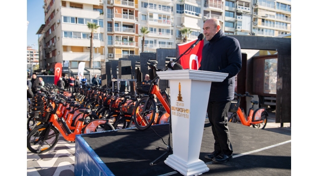 İzmir’de “Elektrik Destekli Akıllı Bisiklet Paylaşım Sistemi” hizmete girdi. Başkan Tunç Soyer, “Kent içi günlük ulaşımda bir devrim niteliğindeki bu sistemle İzmir'in bugününe ve yarınına iz bırakıyoruz” diye konuştu.
