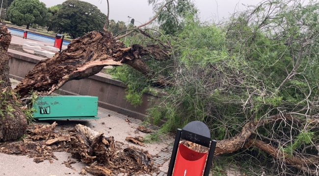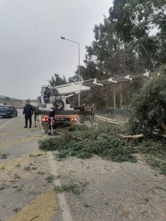 İzmir Büyükşehir Belediyesi, dün gece saatlerinde başlayan, sabah saatlerinde etkisini artıran ve şiddeti zaman zaman bazı ilçelerde 100 kilometreyi bulan kuvvetli fırtına nedeniyle tüm birimleriyle teyakkuza geçti. Kentte rüzgârın hızı Narlıdere’de saatte 110, Karaburun’da 99, Foça ve Urla’da 98, Tire’de 93, Güzelbahçe’de 79, Konak’ta 77 ve Karşıyaka’da 76 kilometreye ulaştı.