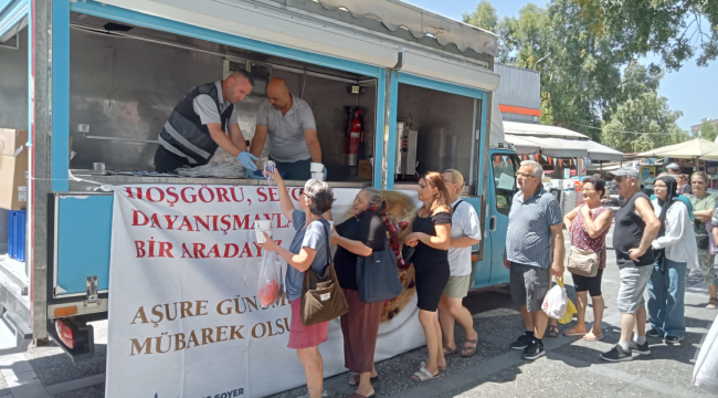 İzmir Büyükşehir Belediyesi tarafından Muharrem ayı için kentin 8 noktasında iki gün boyunca 12 bin kişilik aşure dağıtılacak. 26 cemevine de 15 bin 400 kişilik aşurelik malzeme ulaştırıldı.
