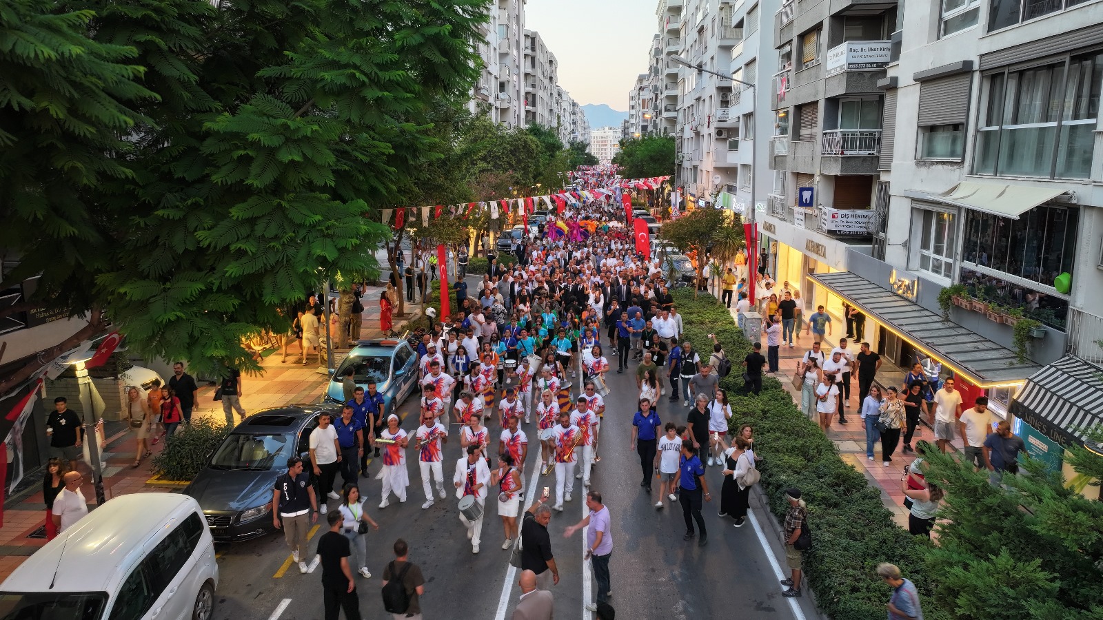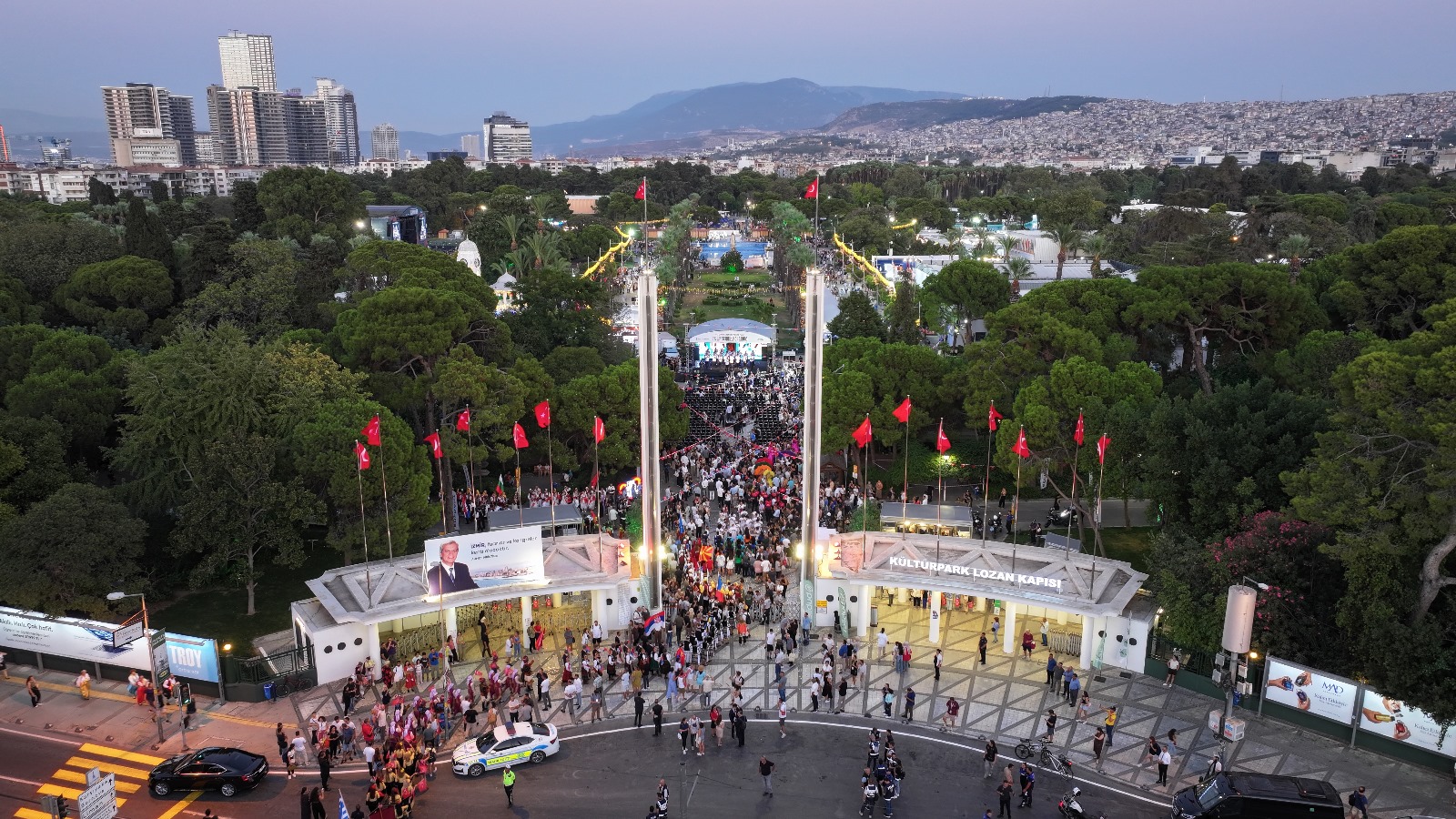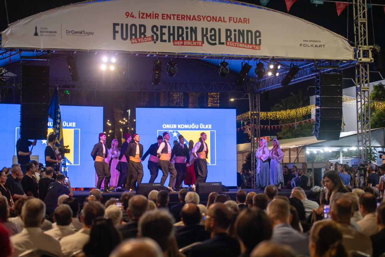 EGEMENLİK - Türkiye’nin ilk fuarı, kentin kalbinde 94. kez kapılarını açtı. İzmir Büyükşehir Belediyesi ev sahipliğinde İZFAŞ tarafından “Fuar Şehrin Kalbinde” sloganıyla düzenlenen İzmir Enternasyonal Fuarı’nın (İEF) açılış töreni, Gündoğdu Meydanı'ndan Kültürpark'a gelen renkli kortejle başladı. İzmir Büyükşehir Belediyesi tarafından organize edilen 29-31 Ağustos tarihlerindeki Uluslararası Balkanlılar Halk Dansları Festivali ile eş zamanlı başlayan ve 9 Eylül’e kadar Kültürpark’ta ziyaretçilerini ağırlayacak İEF’nin İzmir Büyükşehir Belediye Başkanı Dr. Cemil Tugay ile eşi Öznur Tugay ev sahipliğindeki açılışına T.C. Ticaret Bakan Yardımcısı Özgür Volkan Ağar, onur konuğu ülke Bosna Hersek’in Büyükelçisi Mirsada Colakovic, Bosna Hersek İnsan Hakları ve Mülteciler Bakanı Sevlid Hurtic ve Bosna Hersek delegasyonu, CHP Kültür ve Turizm Bakanlığından Sorumlu Genel Başkan Yardımcısı Gülşah Deniz Atalar, Balıkesir Büyükşehir Belediye Başkanı Ahmet Akın ile eşi Arbil Akın, Cumhuriyet Halk Partisi (CHP) İzmir İl Başkan Vekili Barış Özdemir, milletvekilleri, siyasi partilerin temsilcileri, konsoloslar, büyükelçiler, ilçe belediye başkanları, odalar, birlikler, dernekler ile sivil toplum kuruluşlarının başkanları ve temsilcileri, İzmir Büyükşehir Belediyesi bürokratları, meclis üyeleri, basın temsilcileri ve vatandaşlar katıldı. Açılışta Bosna Hersek'in halk dansları ekibi ve drone ile uçan ekranların da gösterisi vardı.