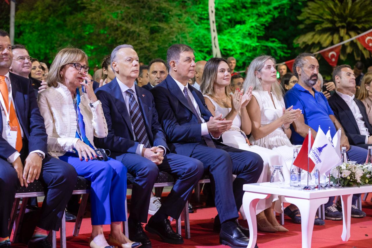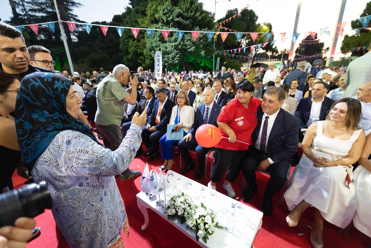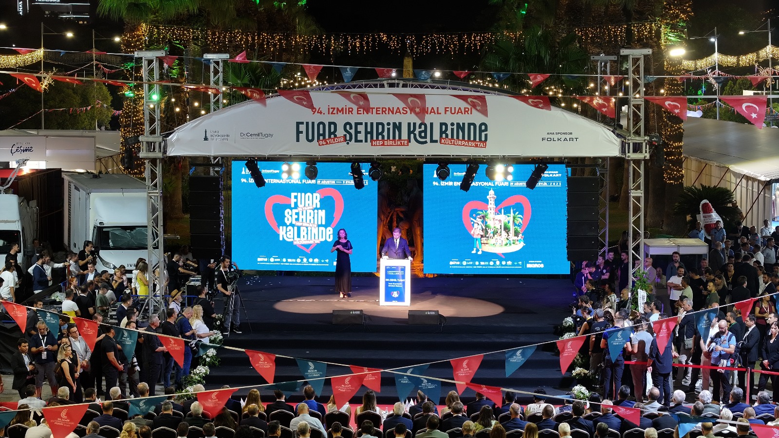 Dünyanın en köklü uluslararası genel ticaret fuarlarının başında gelen, Türkiye’nin ilk fuarı İzmir Enternasyonal Fuarı (İEF), 94. kez kapılarını açtı. İzmir’in kurtuluşu 9 Eylül’e kadar “Fuar Şehrin Kalbinde” sloganıyla devam edecek İzmir Enternasyonal Fuarı’nın kent için önemine vurgu yapan Başkan Dr. Cemil Tugay, “Ne kadar zor günler yaşarsak yaşayalım biliyoruz ki dünyayı güzellik kurtaracak. İnsanları sevmekle başlayacak her şey. Aramızda olduğunuz için hepinize çok teşekkür ediyorum” dedi.