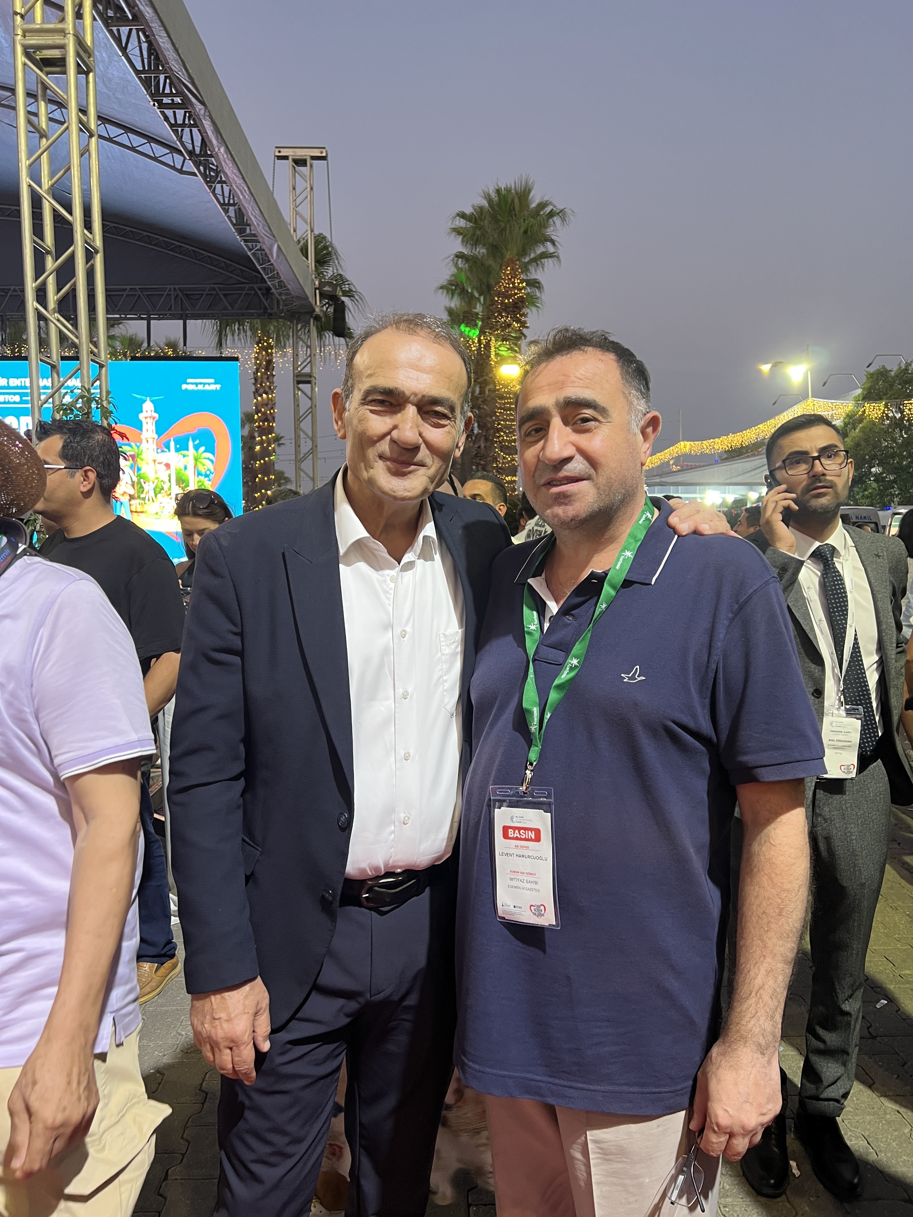 Tugay: Fuar İzmirlilerin kalbinde her zaman var ve olmaya devam edecekİzmir Büyükşehir Belediye Başkanı Dr. Cemil Tugay, “Bu sene 'Fuar Şehrin Kalbinde' diye bir sloganla fuarımızı açtık. Bu slogan şu anlama geliyor; İzmir Fuarı'nın açıldığı ve devam ettiği günlerde İzmirlilerin kalpleri ayrı bir heyecanla çarpar. Bu fuar döneminde mutlaka İzmirliler fuarı ziyaret eder. Anılarına yeni anılar eklerler. İzmir Fuarı hepimizin hayatı boyunca farklı şekillerde kalbinde yer etmiş bir etkinliktir. Fuar İzmirlilerin kalbinde her zaman var ve olmaya devam edecek” şeklinde konuştu.