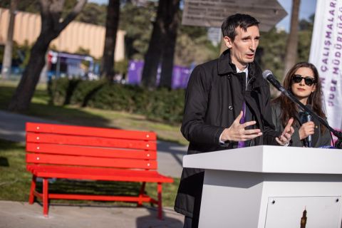 “Şiddet ve ayrımcılığa karşı mücadelenin sembolü” İzmir İtalya Konsolosu Daniele Bianchi de, uygulamaya gösterilen hassasiyet nedeniyle İzmir Büyükşehir Belediyesi’ne ve Başkan Tugay’a teşekkür etti. Kırmızı bankın, kadın cinayetlerinde hayatını kaybeden kadınların yokluğunu simgelediğini belirten Bianchi, “Kırmızı bank, her türlü şiddet ve ayrımcılığa karşı mücadelenin sembolüdür. Bu konuya Dışişleri Bakanımız da büyük önem veriyor ve her şehirde bu sembolün yer alması için girişimlerde bulunuyor. Bu aslında her türlü şiddete karşı ‘hayır’ demektir. Bu girişimle önemli bir adım attık. Etkinliğimize katılan herkese ve tüm kadınlara teşekkür ediyorum” dedi.