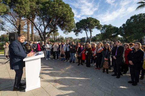 “Herkesin üzerine düşeni yapması gerekiyor” 8 Mart Dünya Kadınlar Günü’nün tarihine değinen Başkan Tugay, dünyanın birçok yerinde kadınların hâlâ ayrımcılığa uğradığını, özgürlüklerinin ve emeklerinin kısıtlandığını söyledi. Kadınların şiddetten daha fazla etkilendiğini ve afet durumlarında da daha fazla mağduriyet yaşadığını belirten Tugay, şiddetin yalnızca bireysel değil, toplumsal ve küresel bir sorun olduğuna dikkat çekti. Yerel yönetimlerin kentteki şiddetin nedenlerini araştırarak önlem alması gerektiğini ifade eden Tugay, “Ancak toplumun tamamı bu konuda sorumluluk almalı; herkesin üzerine düşeni yapması gerekiyor” dedi.