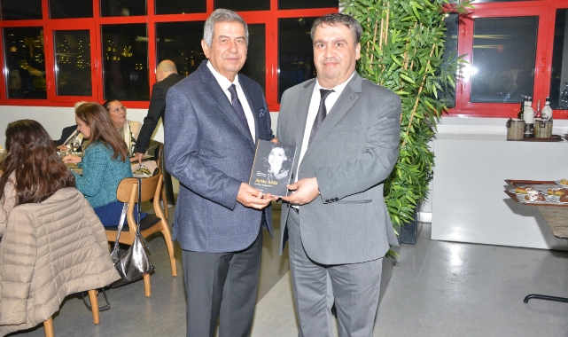 EMD İzmir Şubesi Başkanı Murat Demircan, ESBAŞ Yönetim Kurulu Başkan Vekili Dr. Faruk Güler’e derneğin yayını Aytaç Abla kitabını takdim etti.