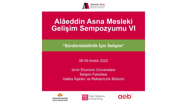 İletişim sektöründe 50 yıla yakındır hizmet veren A&B İletişim’in kurucusu Prof. Dr. Alâeddin Asna anısına hayata geçirdiği sempozyumlar dizisinin altıncısı İzmir Ekonomi Üniversitesi İletişim Fakültesi işbirliğiyle düzenlenecek. 8-9 Aralık 2022 tarihlerinde gerçekleştirilece k sempozyum; iletişim profesyonelleri ile akademik dünyayı yakınlaştırarak yenilikçi yaklaşımlar için ufuk açmayı ve mesleki eğitimi geliştirmeyi hedefliyor. Sempozyumun bu yılki odağı “Sürdürülebilirlik İçin İletişim”