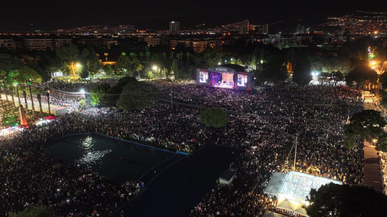 94’üncü İzmir Enternasyonal Fuarı (İEF) kapsamında bu kez ünlü sanatçı Yıldız Tilbe sahne aldı. İzmirlilerin büyük ilgi gösterdiği sanatçıyı dinleyenler arasında İzmir Büyükşehir Belediye Başkanı Dr. Cemil Tugay ve eşi Öznur Tugay da vardı.