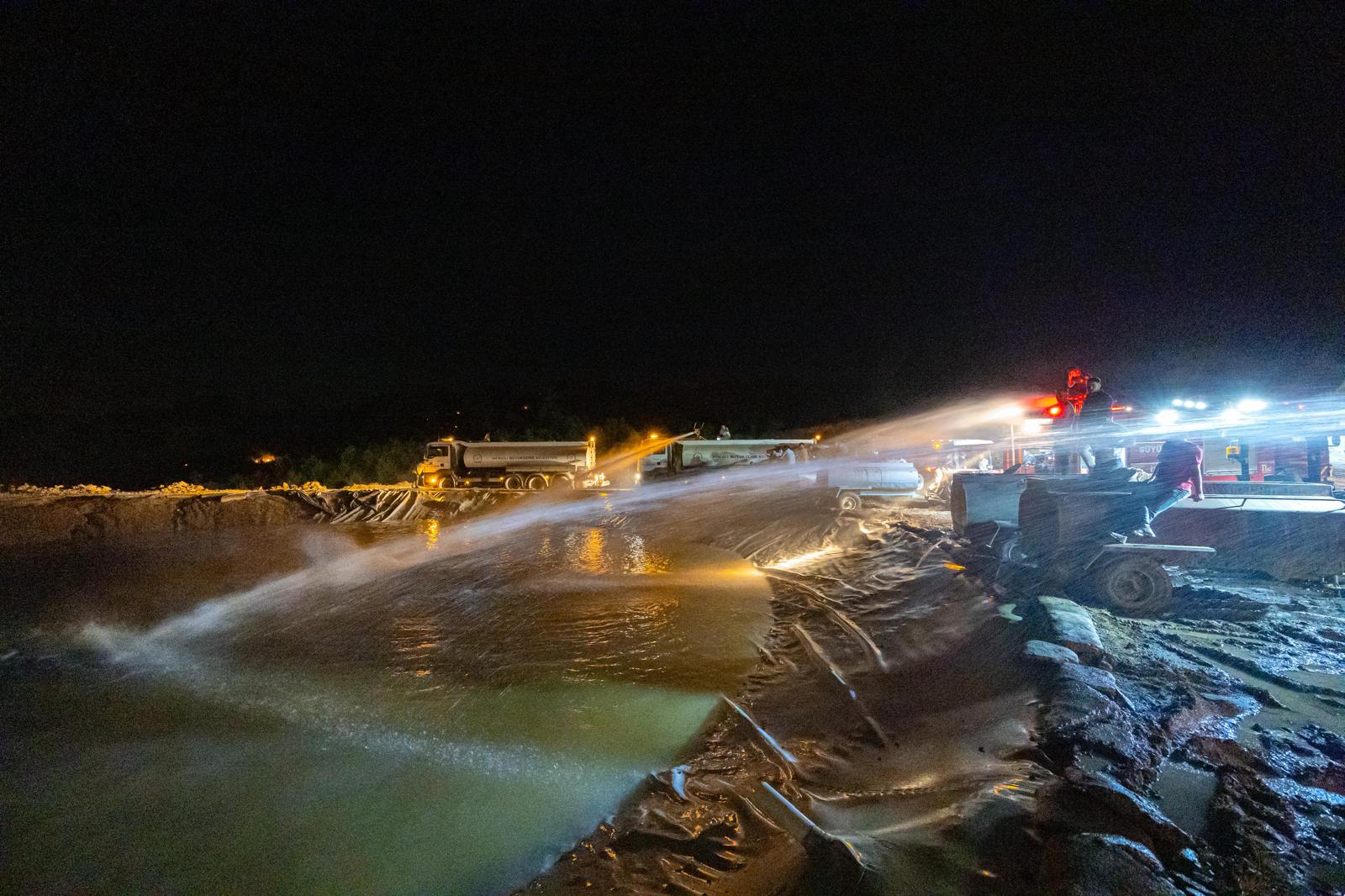 EGEMENLİK - İzmir Büyükşehir Belediyesi İtfaiye Dairesi Başkanlığı’na bağlı ekipler, Denizli’de 29 Ağustos’ta Çatak Mahallesi ile Aydın’ın Buharkent ilçesi Kızıldere Mahallesi arasında başlayan ve rüzgarın etkisiyle geniş bir alana yayılan orman yangınıyla mücadeye destek vermek üzere bölgeye gitti. Denizli’nin Buldan ilçesinde süren yangının kontrol altına alınması için belediyenin diğer birimlerinden de 2 su tankeri olay yerine gönderildi. Alevlere karşı yoğun mücadeleDenizli’de günlerdir süren yangına karşı ekipler yoğun bir mücadele veriyor. Havadan ve karadan söndürme çalışmalarının devam ettiği Denizli’de yoğun müdahaleye rağmen alevler henüz kontrol altına alınamadı.