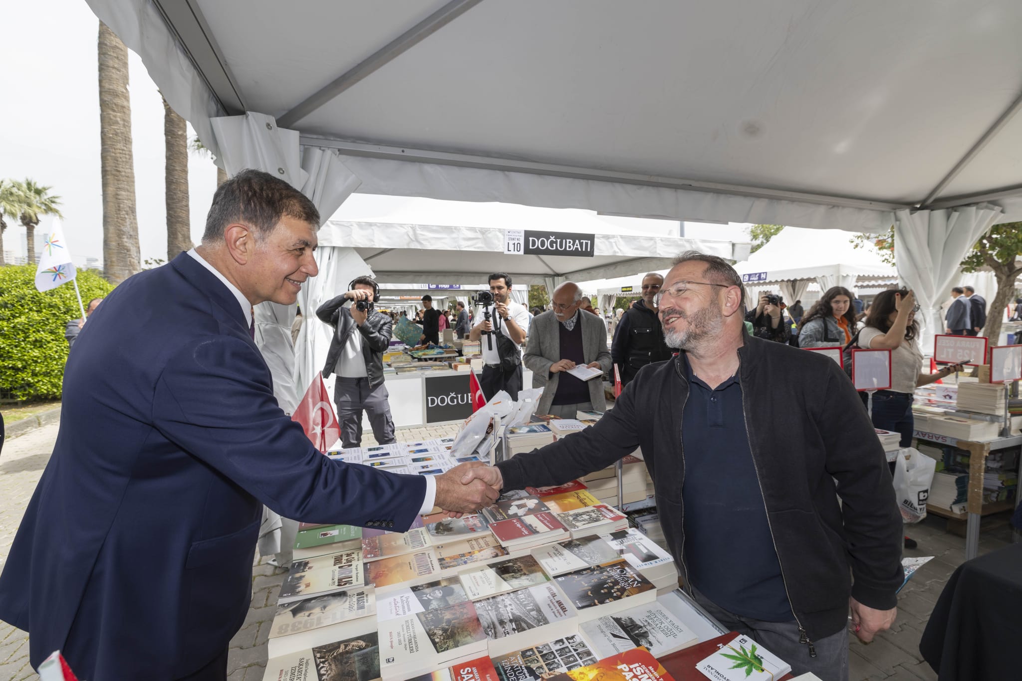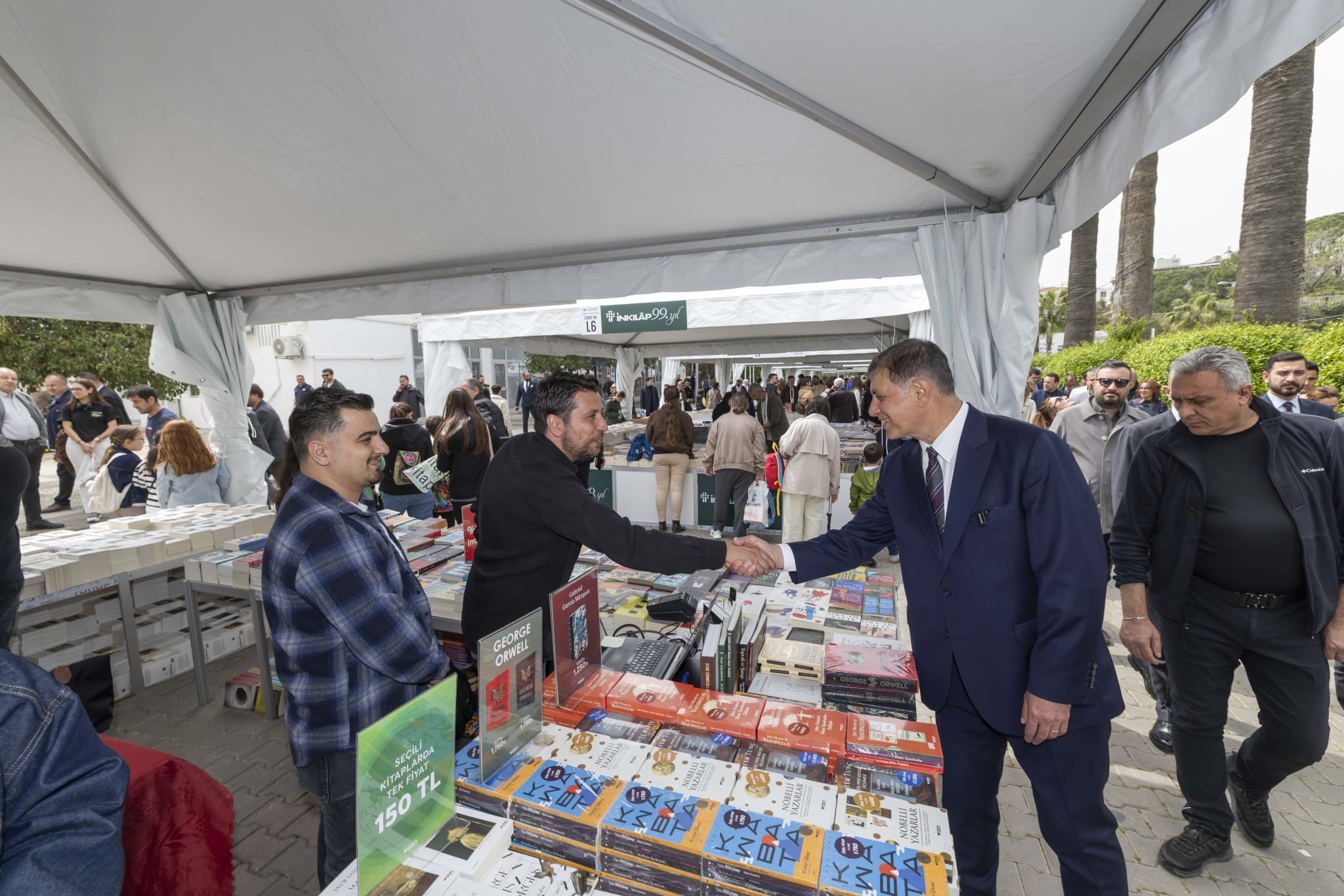 Fuar turu yapıldıAçılış konuşmalarının ardından Başkan Tugay, onur konuğu yazar Oya Baydar ve fuar katılımcıları ile açılış kurdelesini kesti. Başkan Tugay daha sonra fuar alanında yer alan stantları gezerek kitapseverler, yazarlar ve yayınevleri yöneticileriyle sohbet etti. Başkan Tugay, fuarı gezen gençler ve çocuklarla hatıra fotoğrafı da çektirdi.Ünlü yazarlar, şairler fuardaFuar boyunca Ahmet Ümit, Ayşe Kulin, Beyhan Budak, Coşkun Aral, Enver Aysever, İnci Aral, Mehmet Eroğlu, Mine Söğüt, Murat Menteş, Mustafa Balbay, Naim Babüroğlu, Nasuh Mahruki, Saygı Öztürk, Selçuk Şirin, Serhan Asker, Sinan Meydan, Suat Çağlayan, Şükrü Erbaş, Yekta Kopan’ın da aralarında bulunduğu birbirinden değerli isimler, imza günleri ve etkinliklerle okurlarıyla bir araya gelecek. Ayrıca, farklı alanlardan gazeteci, akademisyen ve düşün insanları da fuarın zengin içeriğine katkı sunacak.