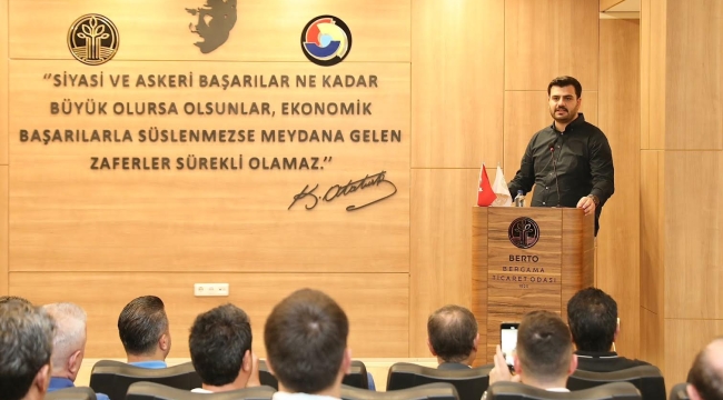 Bergama Ticaret Odası’nda gerçekleştirilen, AK Parti Gençlik Kolları Genel Başkanı ve İzmir Milletvekili Eyyüp Kadir İnan, Bergama Belediye Başkanı Hakan Koştu, Bergama Ticaret Odası Başkanı Lütfi Kolat, Meclis Başkanı Tahir Erdoğan, Yönetim Kurulu Üyesi Salim Zeki Kurşun, Bergama Belediye Başkan Yardımcısı Aşkın Uyar, AK Parti İlçe Başkanı Sebahattin Güzel ve Oda başkanlarının katıldığı toplantıda konuşan Bergama Belediye Başkanı Hakan Koştu; “İzmir’in ilk UNESCO şehri tarihiyle geçmişiyle kadim bir medeniyetin üzerine kurulmuş olan Bergama’nın özellikle son 5 yılda değeri artarak devam ediyor. Bunlardan en önemlilerden birisi ulaşım sorununun çözülmesi oldu. Sayın milletvekilimiz de bahsetti Şehir Hastanesi ile aramızdaki mesafe 35 dakikaya düştü. Bu çok önemliydi, Bergama ile metropol arasındaki bağ neredeyse kopmak üzereydi. İzmir’e 2 – 2.5 saatte gittiğimiz oluyordu. Şu anda çok daha hızlı ve güvenli biçimde metropol merkezine ulaşabiliyoruz. İzmir – İstanbul otobanı, Çanakkale köprüsü ve tüneller Bergama’nın ulaşımını çok daha önemli bir noktaya getirdi ve artık yatırımcılar buraya doğru yönelmeye başladı. Son yıllardaki yatırımlar bize bunu gösteriyor. 2019’da göreve geldiğimizden itibaren Sayın Cumhurbaşkanı, Bakanlıklarımız ve Milletvekillerimizin desteğiyle altyapıdan üst yapıya bir çok sorunu çözerek bugünlere geldik. Bundan sonra da daha büyük projelerle Bergama’ya hizmet etmeye devam edeceğiz.