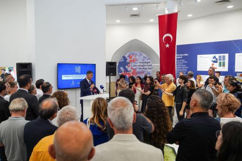 İZPA Başkanı Velibeyoğlu: İZPA bir buçuk yılda önemli yol kat ettiBuluşmada İZPA’nın yürüttüğü çalışmalar ve sergi hakkında basın mensuplarına sunum yapan İZPA Başkanı Prof. Dr. Koray Velibeyoğlu, “İzmir Planlama Ajansı, bir buçuk yıl önce yeniden yapılandı ve çalışmalarına başladı. Bu süre içerisinde önemli yol kat etti. İZPA’nin temelde üç fonksiyonu var. Birincisi, bilgiye dayalı analiz, veriye dayalı analiz ve objektif analiz, hepimizin ihtiyacı olan şey. Doğru bilgiye ulaşmak için buna sahip olmamız gerekiyor. Yaptığımız çalışmalar, analizler belirli bir olgunluğa geldi. İkinci fonksiyonumuz, birlikte üretmek, birlikte karar vermek, birlikte tanımlamak ve birlikte çalışmanın bir parçası olabilmek. Üçüncüsü ise etki yaratmak. Yaptığımız her işin mutlaka bir sonuca ulaşması ve bir etki yapması lazım. Bu çalışmaların sonucunu sergide eylem planları olarak görmek mümkün” ifadelerini kullandı. “Her yaptığımız işte bu üçlü ufkun izi var”Kentin geleceğine bakma yönünde yürütülen çalışmaları anlatan Velibeyoğlu, “İlk çalışmalarımız kentin 50 yıllık geleceğine bakmak olarak çıktı. Buna sıfır noktasından başladık. Çünkü gelecek, bugünden başlıyor. Bizim bugün attığımız ilk adım, gelecek 50 yılın nasıl geçeceğine dair bir işaret. İlerlediğimiz her noktada da o hedeflere ulaşmaya yönelik geriye doğru bizim için bir yol haritası. Üç ufukta görmeye çalıştık. 2030 hedefimiz var. 2030’da iklim değişikliği ve yaşadığımız bütün etkiler var. 2054 hedefimizde ise kentimizin planları ne olacak, yaşadığımız alanlar ne olacak, yaşam alanlarımız daha kaliteli nasıl olabilir bunun üzerine çalışıyoruz. 2074 hedefimiz ise bizim için bir pusula. Nereye gittiğimizi nereden bileceğiz? Bunu dünyayla birlikte nasıl yapacağız? Buna üçlü bir ufuk şeklinde bakmaya çalıştık. Her yaptığımız işte bu üçlü ufkun izi var” dedi. Basın mensuplarıyla İzmir anketi Koray Velibeyoğlu, sergide yer alan çalışmalar hakkında basın mensuplarını bilgilendirdi. Sergiyi 10 gün içinde 15 bin ziyaretçinin gezdiğini ifade eden Velibeyoğlu, sergide karekod ile İzmir’in sorunları ve ihtiyaçlarına dair yapılan anketler hakkında verileri anlattı. Ardından basın mensuplarını ankete katılmaya davet eden Velibeyoğlu, canlı olarak cep telefonları aracılığıyla basın mensuplarının görüşlerini aldı. Canlı ekranda basın mensuplarının İzmir ile ilgili ankete dair verileri yansıtılırken en önemli sorunlar arasında deprem, ulaşım, iklim krizi, çevre sorunları gibi konular yer aldı.Sergide dört bölüm yer alıyorDört ana bölümden oluşan sergide, hem ajansın çalışma yöntemlerine hem de İzmir’in bugününü ve geleceğini nasıl düşündüğüne dair bir çerçeve sunuluyor. Serginin ilk bölümünde, kentle ilgili güncel çevresel ve mekânsal riskleri anlamaya yönelik analiz çalışmaları yer alırken, ikinci bölüm bu analizlerden beslenen eylem planları ve İZPA tarafından hazırlanan yayınlardan oluşuyor. Ajansın gerçekleştirdiği İzmir’i birlikte düşünme ve birlikte şekillendirmeyi amaçlayan katılımcılık odaklı çalışmalar ise serginin üçüncü bölümünde kendisine yer buluyor. Serginin dördüncü ve son bölümünde ise ajansın, 2030 yılından 2054’e ve oradan 2074’e uzanan zaman diliminde İzmir’e dair planları, vizyonu, kısa, orta ve uzun vadeli hedefleri paylaşılıyor.