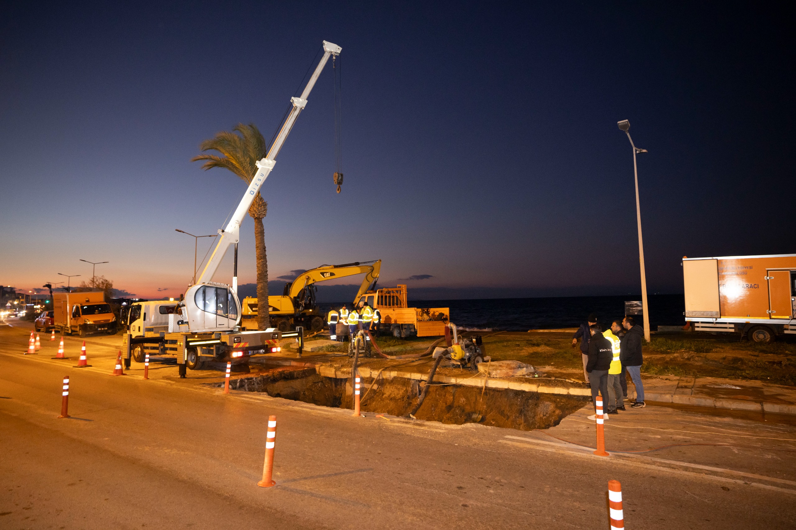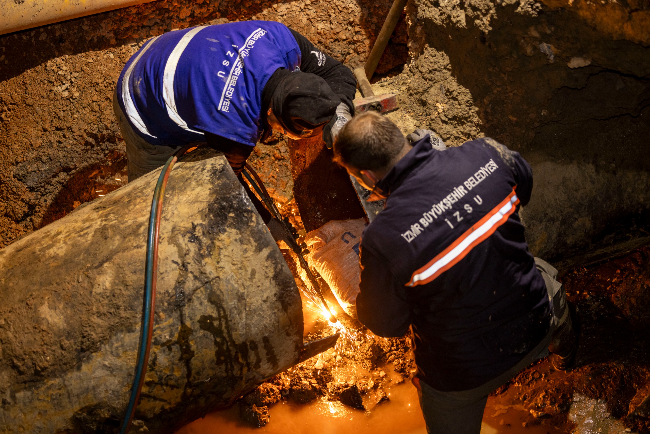 İZSU ekipleri Güzelbahçe–Narlıdere ana iletim hattındaki arızayı giderdi