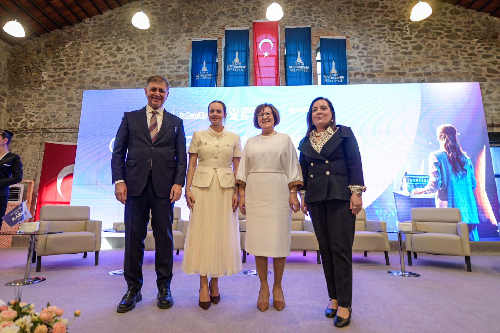 İzmir’de 8 Mart Dünya Kadınlar Günü kapsamında düzenlenen “Cesaretin Adı: Kadın – 103 Yıllık Cesaret” zirvesi, iş dünyasından akademiye pek çok ismi bir araya getirdi. Zirvenin fikir lideri, İzmir Büyükşehir Belediye Başkanı Dr. Cemil Tugay’ın eşi Öznur Tugay “Bir kadının hayatına dokunan her adım aslında toplumun yarınını değiştirir ve kadınlar birlikte yürüdüğünde hiçbir hedef uzak değildir” dedi. Başkan Dr. Cemil Tugay da “Gazi Mustafa Kemal Atatürk’ün kurduğu cumhuriyet ilelebet var olacak ve beklenen aydınlık günleri hep beraber yaşayacağız” diye konuştu.EGEMENLİK - İzmir Büyükşehir Belediyesi, Batı Anadolu Sanayici ve İş İnsanları Dernekleri Federasyonu (BASİFED) ve TOBB İzmir Kadın Girişimciler Kurulu tarafından kadınların ekonomik hayattaki rolünü güçlendirmek ve ilham veren başarı hikâyelerini görünür kılmak amacıyla 8 Mart Dünya Kadınlar Günü kapsamında “Cesaretin Adı: Kadın-103 Yıllık Cesaret” zirvesi yapıldı. İş dünyasının temsilcilerini, kadın girişimcileri, akademisyenleri, sanatçıları, medya mensuplarını ve gençleri aynı çatı altında buluşturan zirvede, kadın girişimciliğinden liderliğe; yapay zekâ ve toplumsal cinsiyet ilişkisinden iş dünyasında ve medyada kadının yerine kadar pek çok önemli başlık ele alındı. Yalnızca ilham veren hikâyeler değil, somut çözüm önerileri, iyi uygulama örnekleri ve iş birliği modellerinin de konuşulduğu programa İzmir Büyükşehir Belediye Başkanı Dr. Cemil Tugay ve zirvenin fikir lideri eşi Öznur Tugay, BASİFED Yönetim Kurulu Başkanı Semiha Güneş, TOBB İzmir Kadın Girişimciler Kurulu Başkanı Deniz Celep, İzmir Büyükşehir Belediyesi Başkan Vekili Dr. Zafer Levent Yıldır ile İzmir Büyükşehir Belediyesi Genel Sekreter Yardımcısı Prof. Dr. Pınar Okyay da katıldı. Zirve; iş dünyası, girişimcilik, sanat, medya ve sivil toplum alanlarında ülkemize değer katan pek çok önemli ismin katkı sunduğu panellerle devam etti.