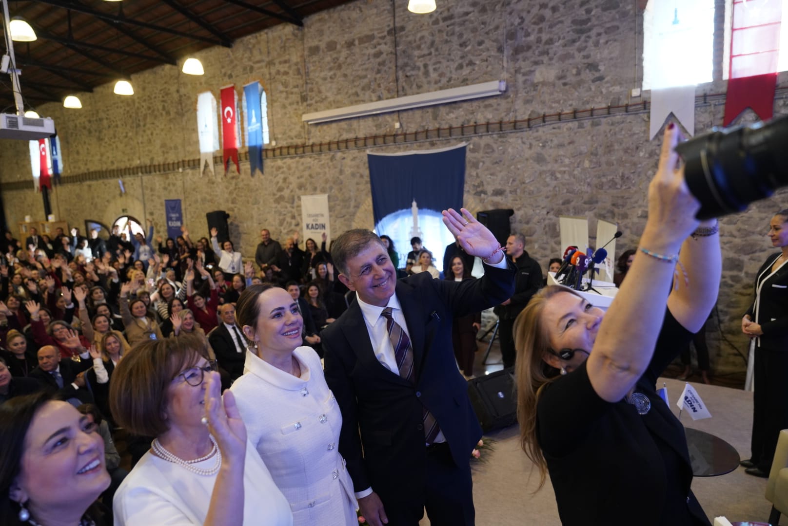 “Kadınlar ve erkekler eşittir”Başkan Tugay, kadınların iş hayatındaki varlığı üzerinden de şu değerlendirmelerde bulundu: “İstihdam oranında kadınlar erkeklere göre çok geride ve ‘kadınlar sadece belli işleri yapabilir, belli işleri yapamaz’ deniyor. İzmir ile gurur duyuyoruz. Kadın otobüs şoförleri Türkiye’de en fazla İzmir’de var. 300 civarında kadın otobüs şoförümüz var. Kadın otobüs şoförleri daha az kaza yapıyor, daha az şikayet alıyor. 7 yıldır belediye başkanıyım, kadınların verilen göreve daha fazla sahip çıktığını gördüm. Herhangi bir yarışta kadınlar neden geri kalıyor, çünkü o noktaya getiriliyorlar. Okul çağından itibaren sürekli geride bırakılıyorlar. Bu toplumun bilinçaltında yaptığı bir şey. ‘Kadınlar üstündür’ demiyorum, ‘erkekler üstün değildir’ diyorum. ‘Kadınlar ve erkekler eşittir’ diyorum. Eşit fırsatlar tanıyacak şekilde eğitim sistemini düzenlememiz, insanları eşit şartlarda yarışır hale getirmemiz lazım. Gazi Mustafa Kemal Atatürk bunu anladığı için cumhuriyeti kurarken kadınlara da çağrıda bulundu. İzmir İktisat Kongresi öncesi yaptığı Kadın Kongresi böyle bir şeydi. Bir toplumun kadınlarını geride tutarak o toplumu kalkındıramazsınız. Bu aynı zamanda bir kalkınma, bir ekonomi meselesidir.”“Aydınlık günleri hep beraber yaşayacağız”Konuşmasını Türkiye Cumhuriyeti’nin kurucusu Gazi Mustafa Kemal Atatürk’ü anlatarak tamamlayan Başkan Tugay, “Gazi Mustafa Kemal Atatürk, cumhuriyeti kurduğu günlerde kadınların yeniden doğuşunu sağlamış bir lideridir. Biz ondan güç alarak kadını ve erkeğiyle yolumuza devam edeceğiz. Gazi Mustafa Kemal Atatürk’ün kurduğu cumhuriyet ilelebet yaşayacak ve beklenen aydınlık günleri hep beraber yaşayacağız” dedi.