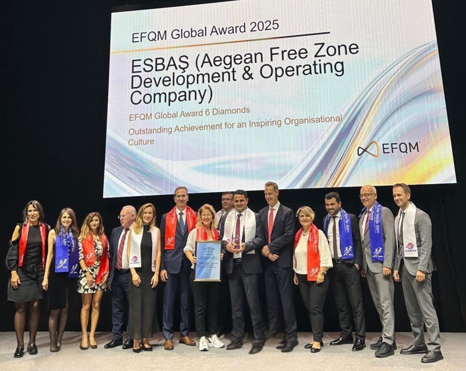 Ege Serbest Bölgesi’nin yönetimini yürüten ESBAŞ, 2012’de başlattığı mükemmellik modeli çalışmalarıyla EFQM Küresel Ödülleri’nde 6 Diamonds seviyesinde tanınma elde etti. Değerlendirme; stratejiden operasyonel mükemmelliğe, çalışan bağlılığından müşteri odaklılığa uzanan geniş bir alanda yürütüldü.