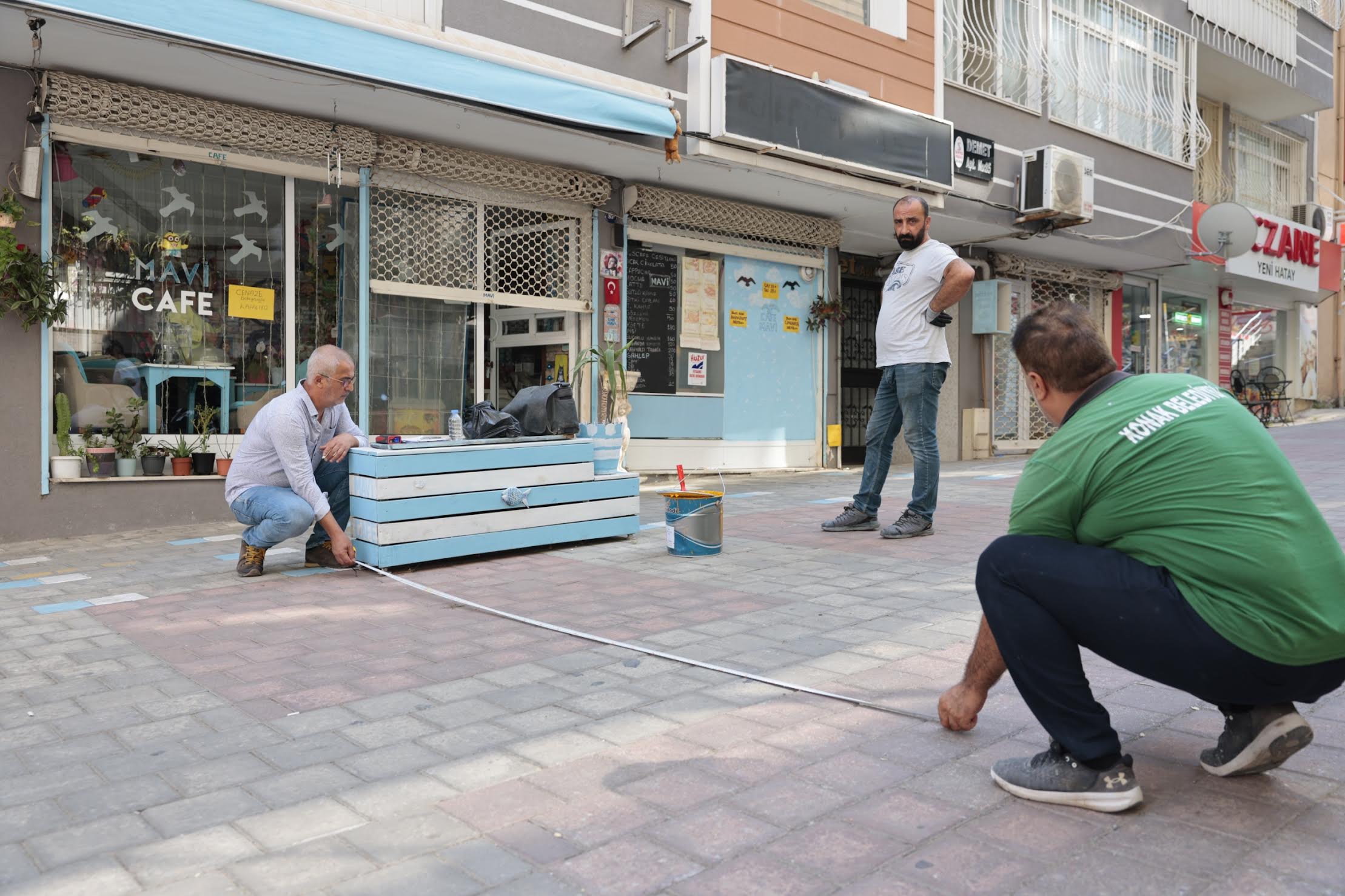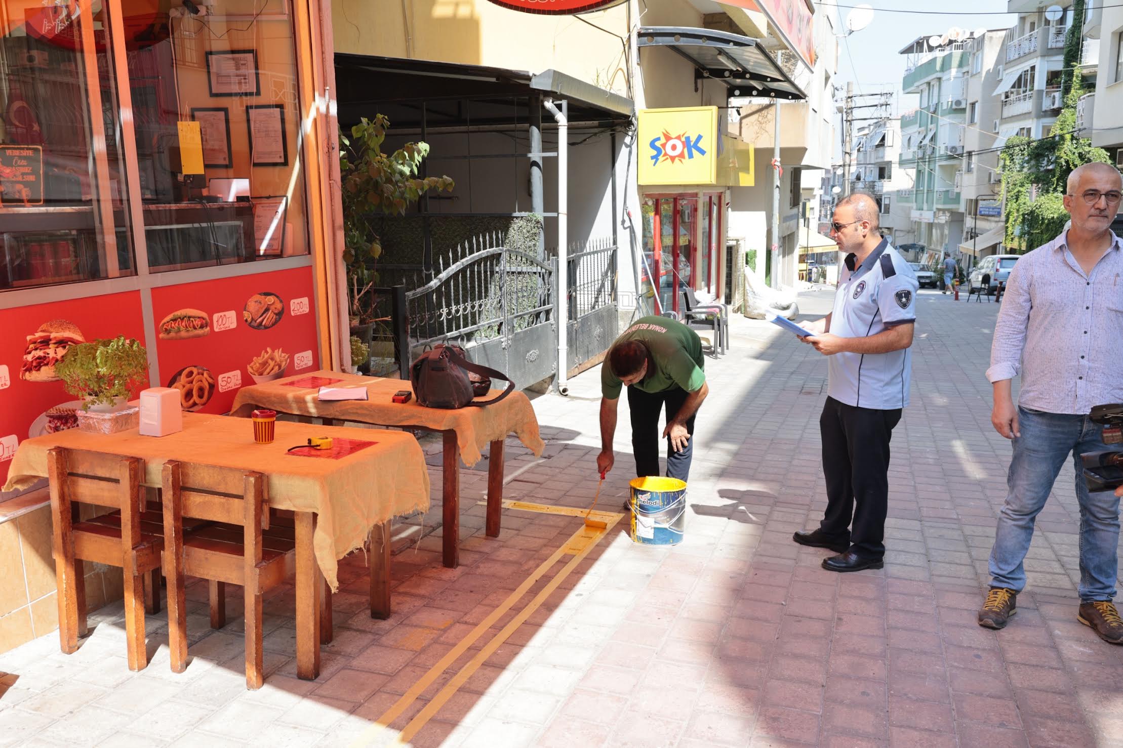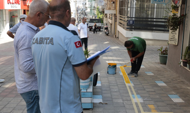 Düzenli bir kent için ilk çizgiİşletmelerin işgal alanlarında yapılan çalışma kapsamında gerekli ölçümlerin yapılmasının ardından, ilk sarı çizgi Hatay bölgesinde çizildi. Yürürlüğe giren yönetmeliğe göre işletmelerin kaldırım cephelerinde kullanabilecekleri alanlar santim santim ölçüldü ve yaya kullanım alanlarına göre düzenleme yapıldı. İşgaliye sınırlarını belirleyerek yaya dostu ve düzenli bir Konak’ı oluşturacak sarı çizgi uygulaması kent genelinde uygulanacak.