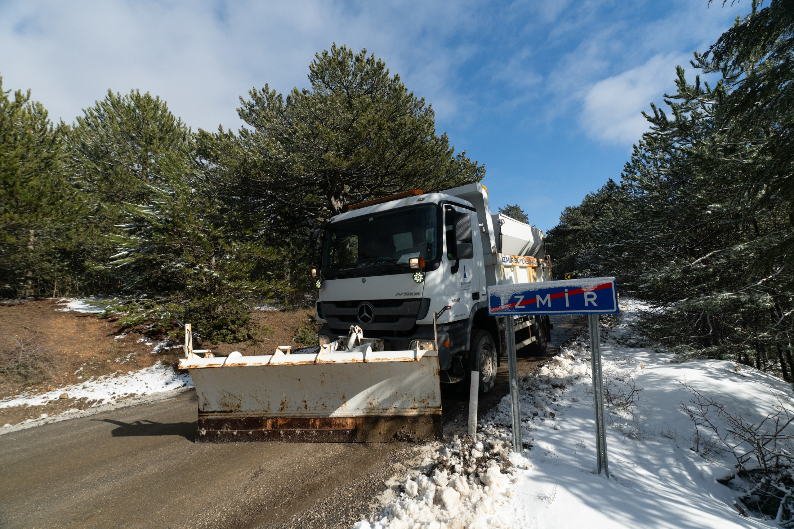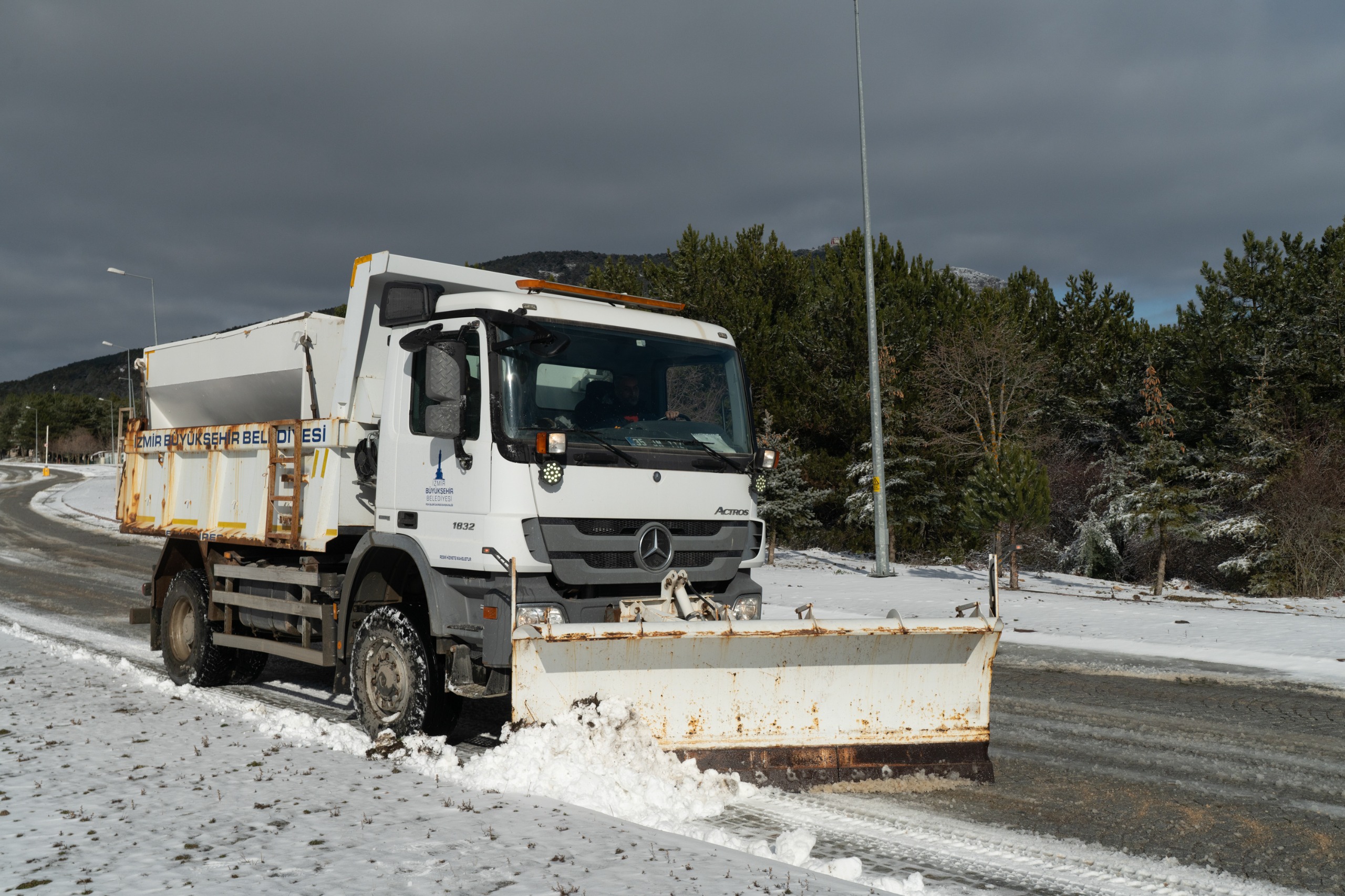 İzmir’in yüksek kesimleri, hava sıcaklıklarının düşmesi ve kar yağışının etkisiyle beyaza büründü. İzmir Büyükşehir Belediyesi karla mücadele ekipleri, başta Ödemiş, Tire, Beydağ ve Kemalpaşa olmak üzere karla kaplanan ve buzlanma görülen yollarda çalışma yürüttü. Gece gündüz demeden görev yapan ekipler, ulaşımda herhangi bir aksama yaşanmaması için meteoroloji verileri doğrultusunda teyakkuz hâlinde önlem almaya devam ediyor.
