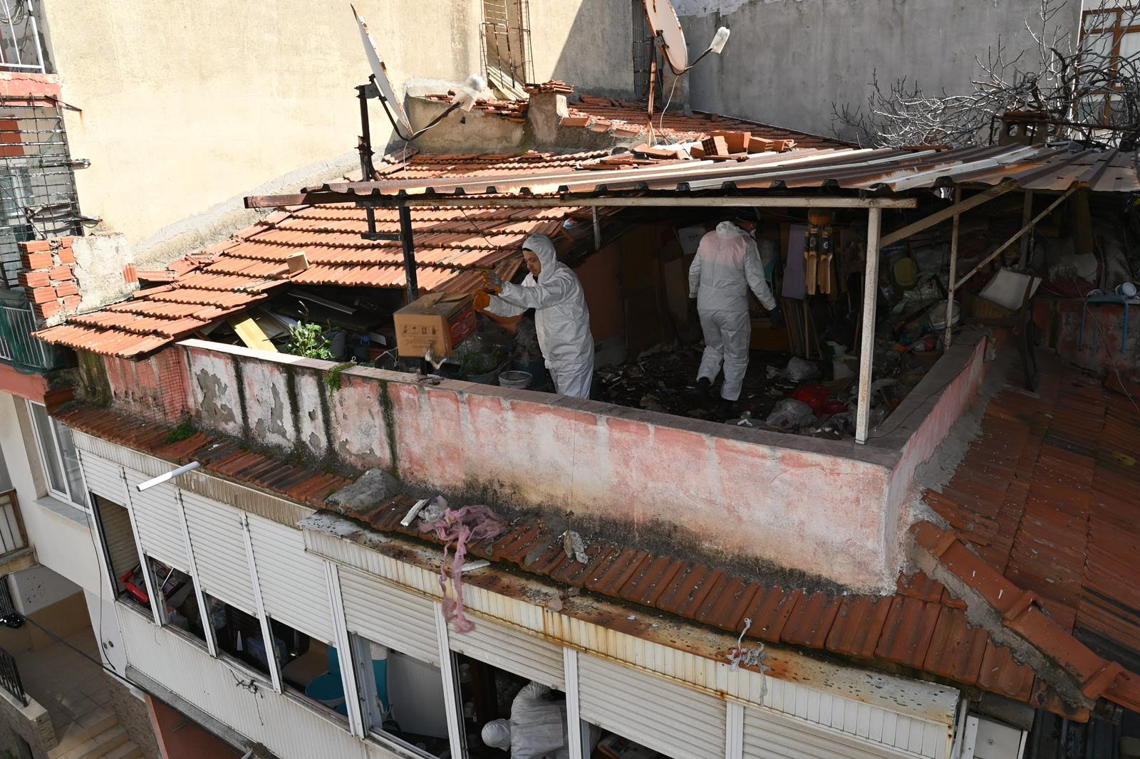 İki katlı ve teras bölümü bulunan yapıdan çıkarılan atık ve eşyalar ekipler tarafından titizlikle ayrıştırılmıştır. Üst kat ve teras bölümünde bulunan atıklar doğrudan kamyonlara yüklenirken, giriş katındaki malzemelerin kamyonlara doğrudan aktarılması mümkün olmadığı için önce sokağa çıkarılmış, daha sonra yola dökülen atıklar kepçe yardımıyla kamyonlara yüklenerek alandan tahliye edilmiştir.