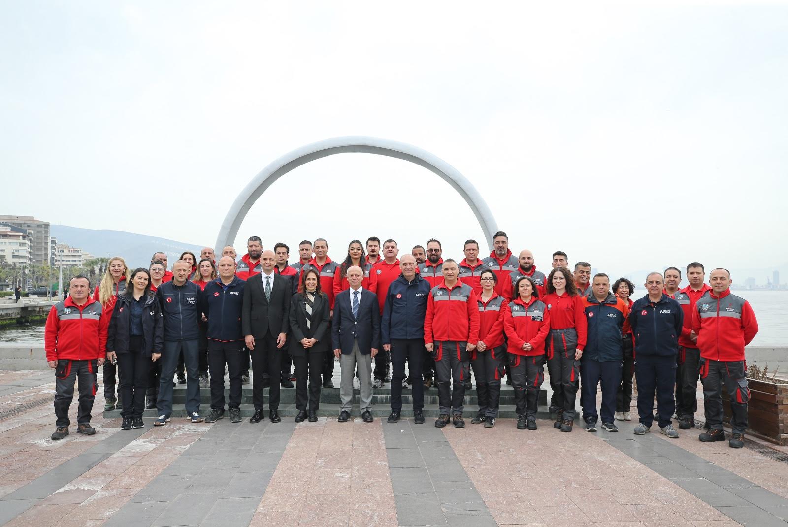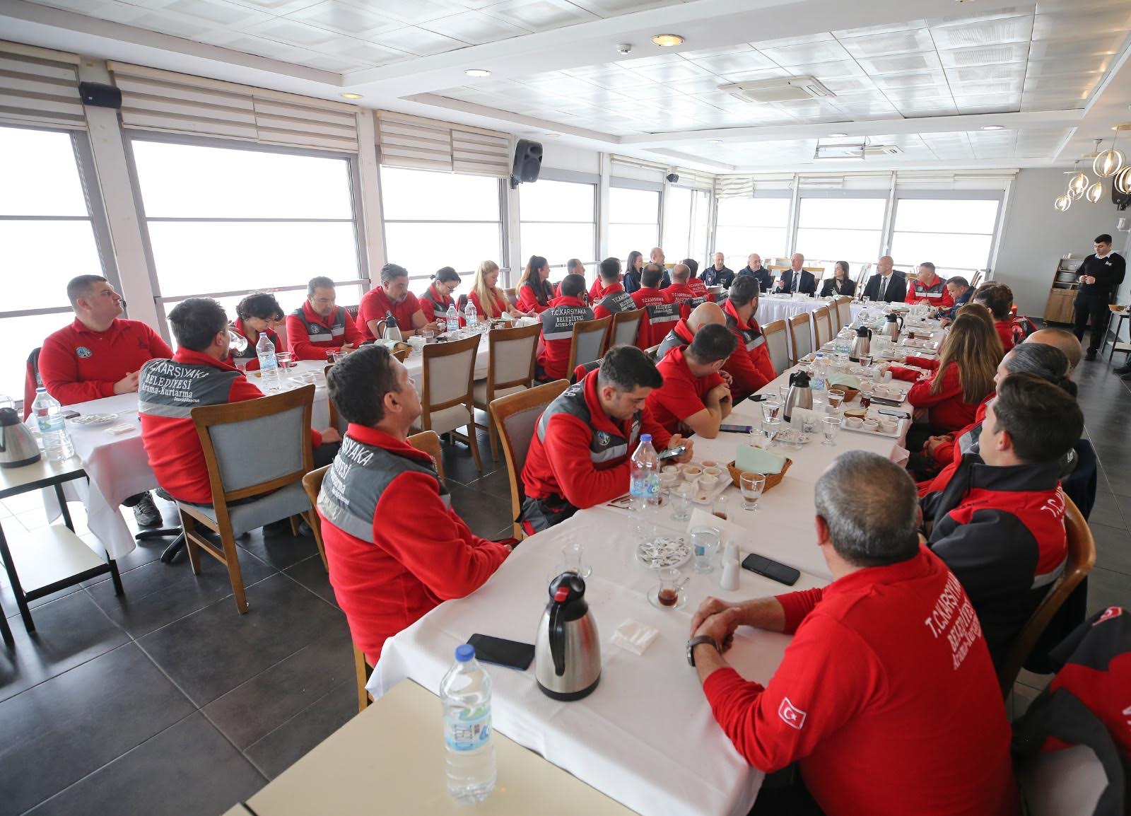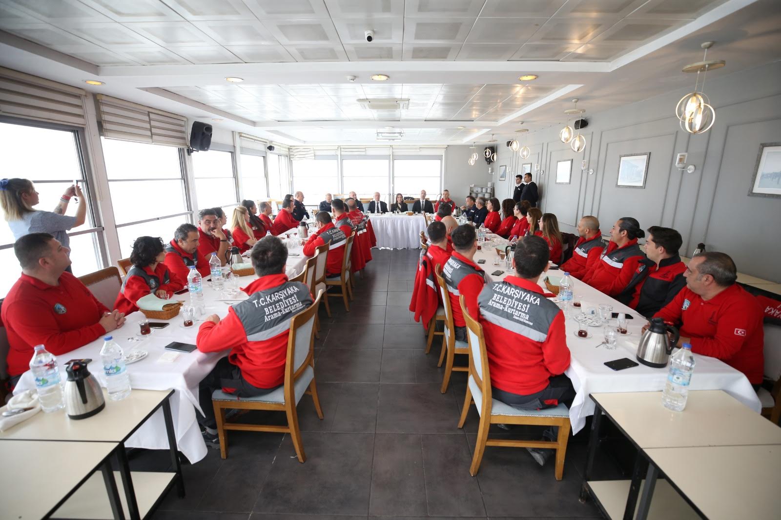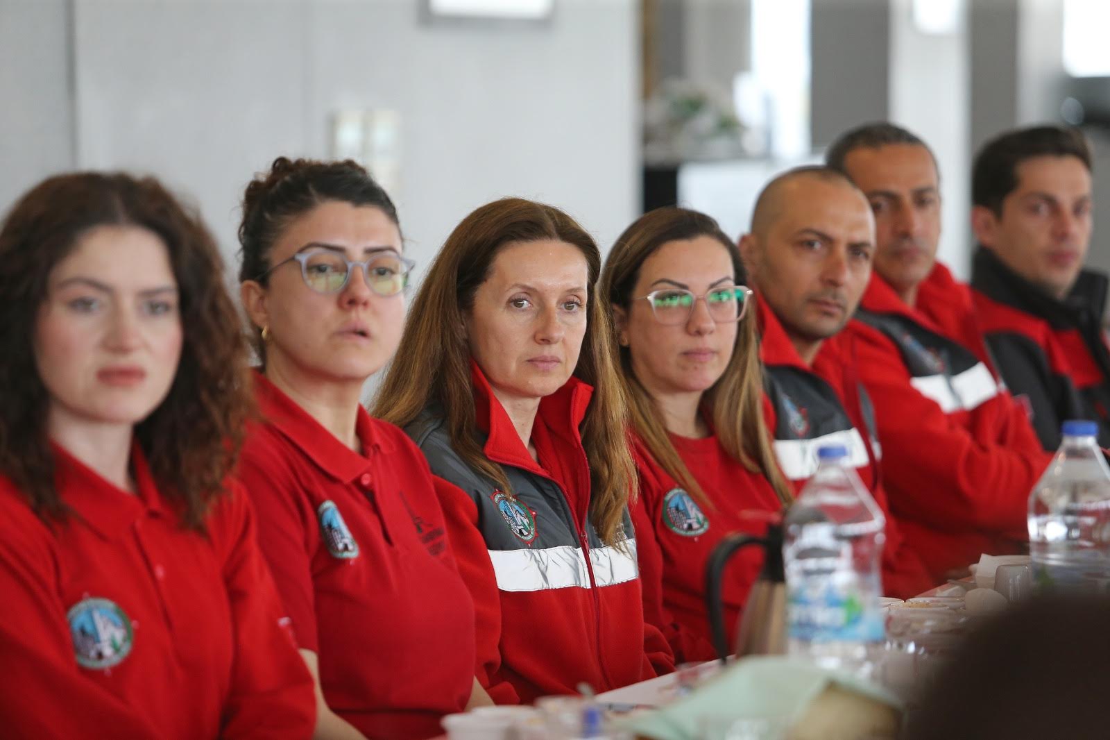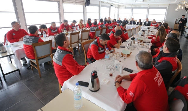 EGEMENLİK - Karşıyaka Belediyesi, AFAD İzmir İl Müdürlüğü tarafından yürütülen Kentsel Arama Kurtarma Akreditasyon eğitimlerini başarıyla tamamlayarak akreditasyon sürecinin önemli bir aşamasını geride bırakan Arama Kurtarma Ekibi için Zübeyde Hanım Nikah Sarayı’nda kahvaltı organizasyonu düzenledi. Karşıyaka Belediye Başkanı Yıldız Ünsal’ın ev sahipliğindeki buluşmaya; AFAD’dan Sorumlu Vali Yardımcısı İsmail Çorumluoğlu, AFAD İzmir İl Müdürü Nazif Ekinci, AFAD İzmir Birlik Müdürü Mahir Aydın Aktaş ve belediye bürokratları katıldı. Buluşmada, halihazırda yürütülen çalışmalar hakkında görüş alışverişinde bulunulurken, kurumlar arası iş birliğinin önemi de vurgulandı.