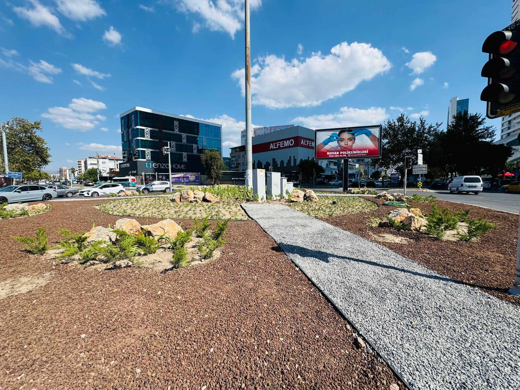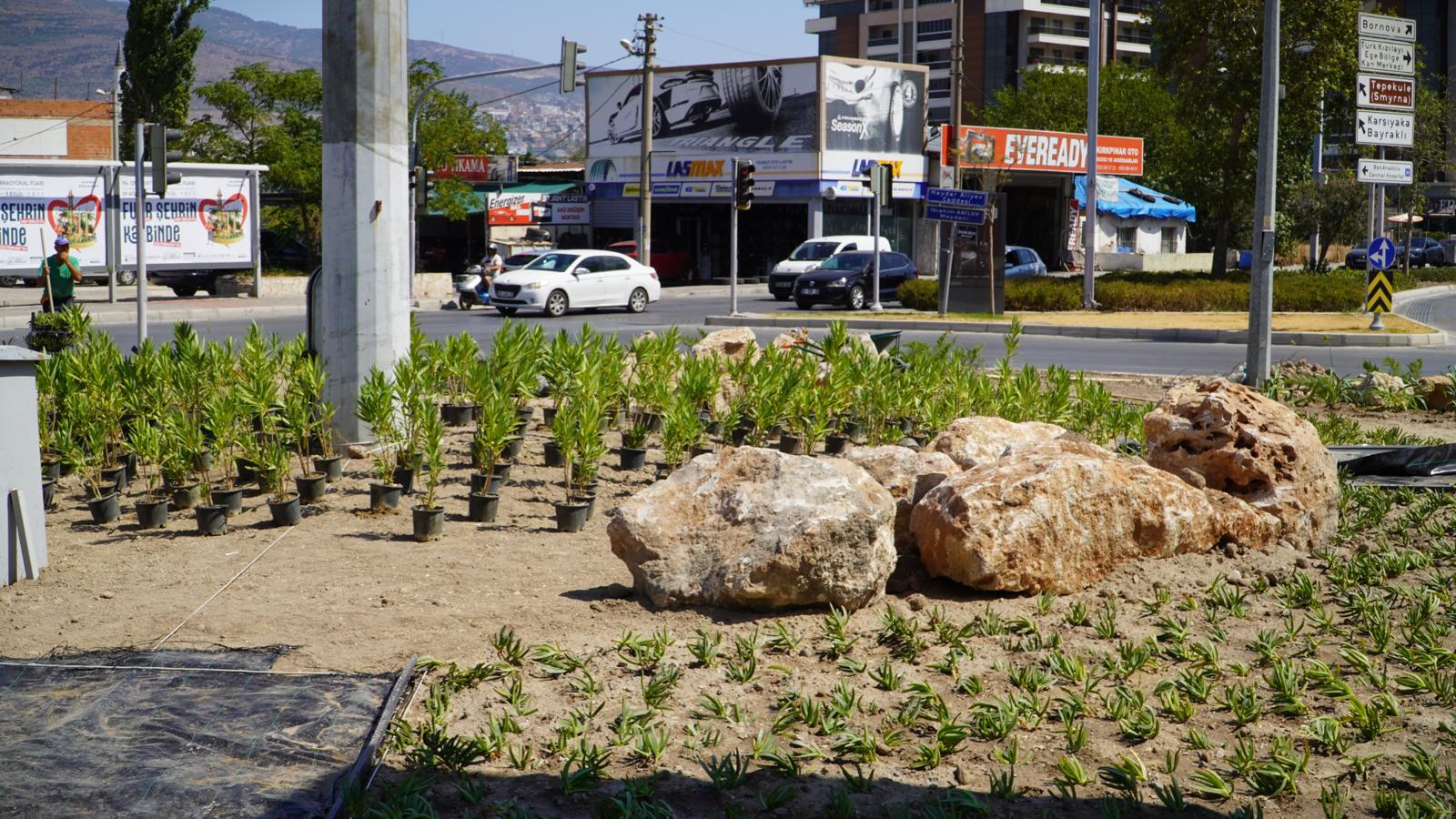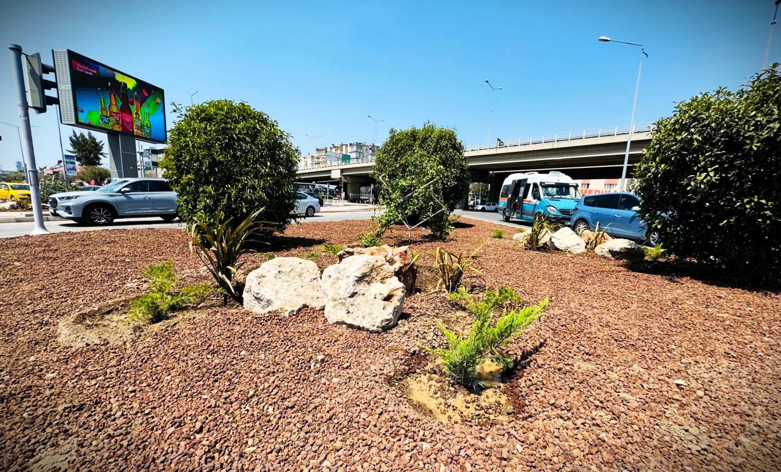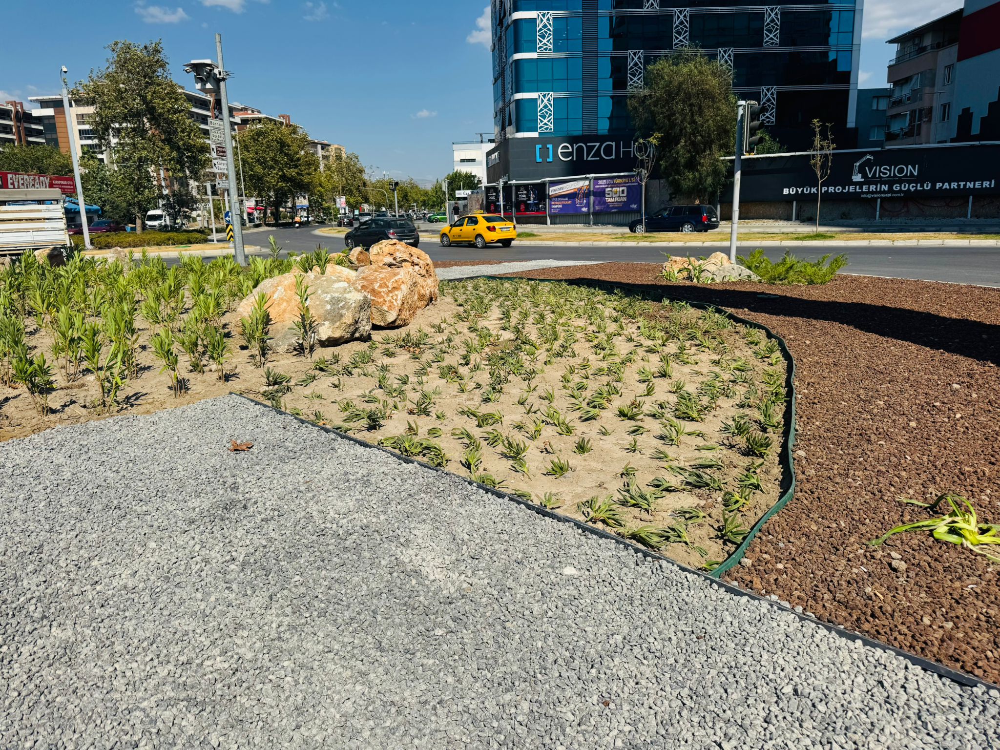 Susuzluğa dayanıklı bitkilerle renklendiPeyzaj çalışmalarında sulama ihtiyacı yüksek türler yerine, doğal koşullara uyum sağlayabilen, su isteği düşük ve kuraklığa dayanıklı agapanthus, ılgın, zakkum, ateş dikeni, katırtırnağı, abelya, taflan gibi bitkiler tercih edildi. Aynı zamanda uygulama alanlarında cüruf ve bazalt kırma taş ve kaya parçaları ile şık bir görünüm elde edildi. Park ve Bahçeler Dairesi Başkanlığı ekipleri planlama doğrultusunda kamusal alanları yeşillendirmeye devam edecek.