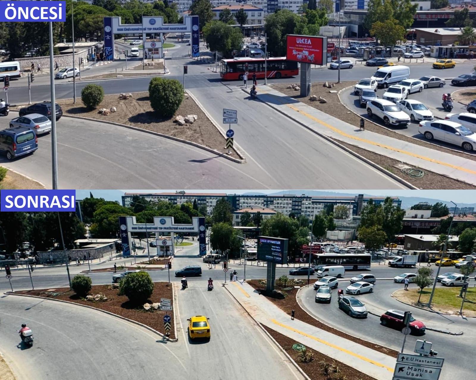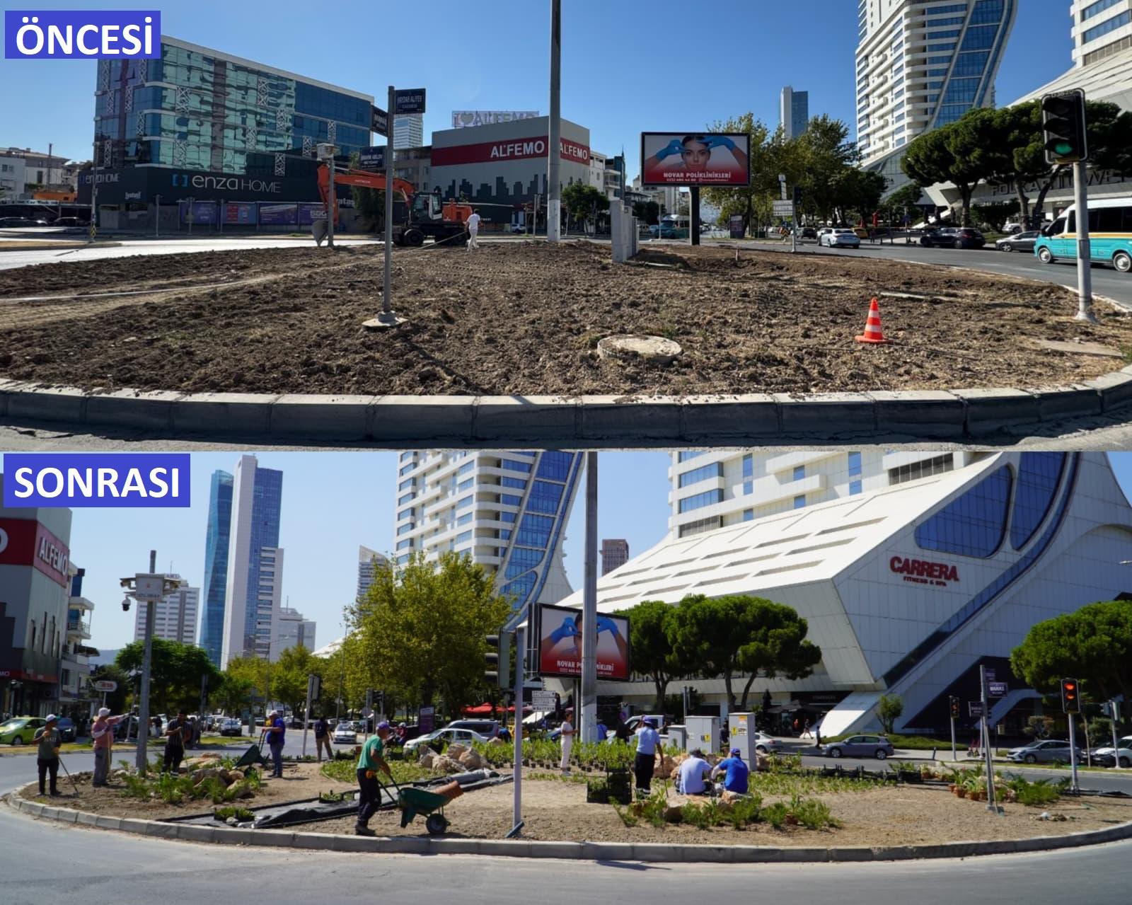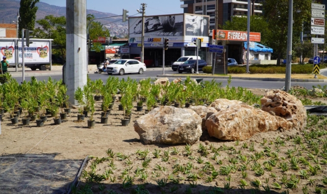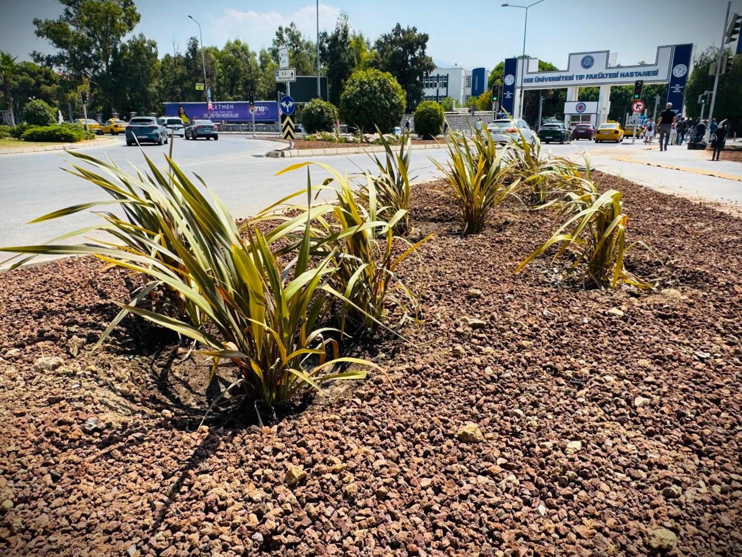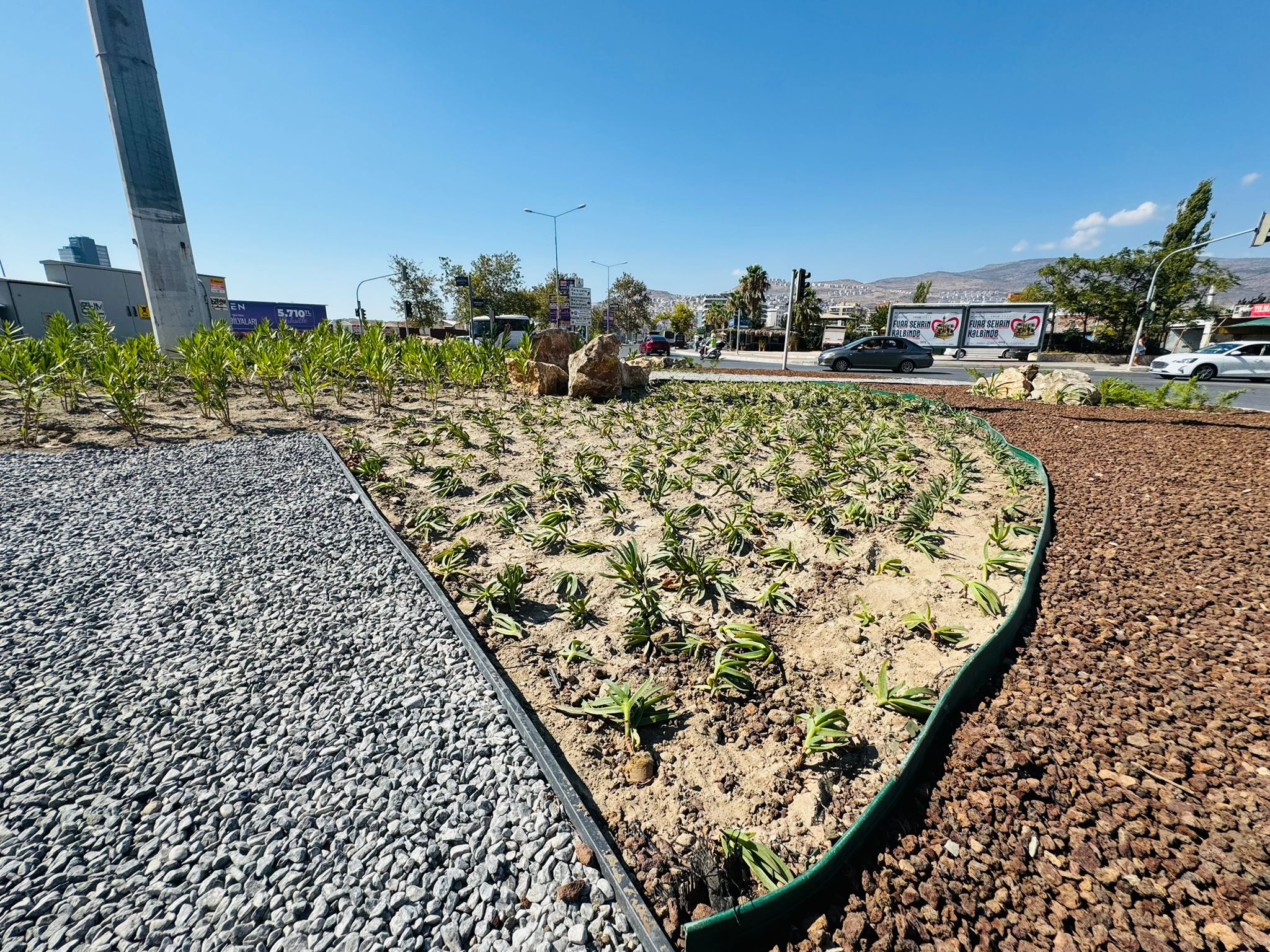 EGEMENLİK - İzmir Büyükşehir Belediyesi, daha az suyla daha çok yeşil alan hedefiyle kente sürdürülebilir yeni yeşil alanlar kazandırmaya devam ediyor. İzmir Büyükşehir Belediye Başkanı Dr. Cemil Tugay’ın kuraklıkla mücadele eylem planı kapsamında yeşil alanlarda kullanılan su miktarını minimum seviyeye çeken Park ve Bahçeler Dairesi Başkanlığı, kurakçıl peyzaj çalışmalarıyla kamusal alanların dönüşümüne hız kattı. İzmir’in sembol kavşaklarını estetik bir görünüme kavuşturan ekipler, son olarak Bornova Ege Üniversitesi Kavşağı ile Bayraklı Haydar Aliyev Caddesi ile Manas Bulvarı kesişiminde yer alan kavşakta peyzaj çalışması yaptı.