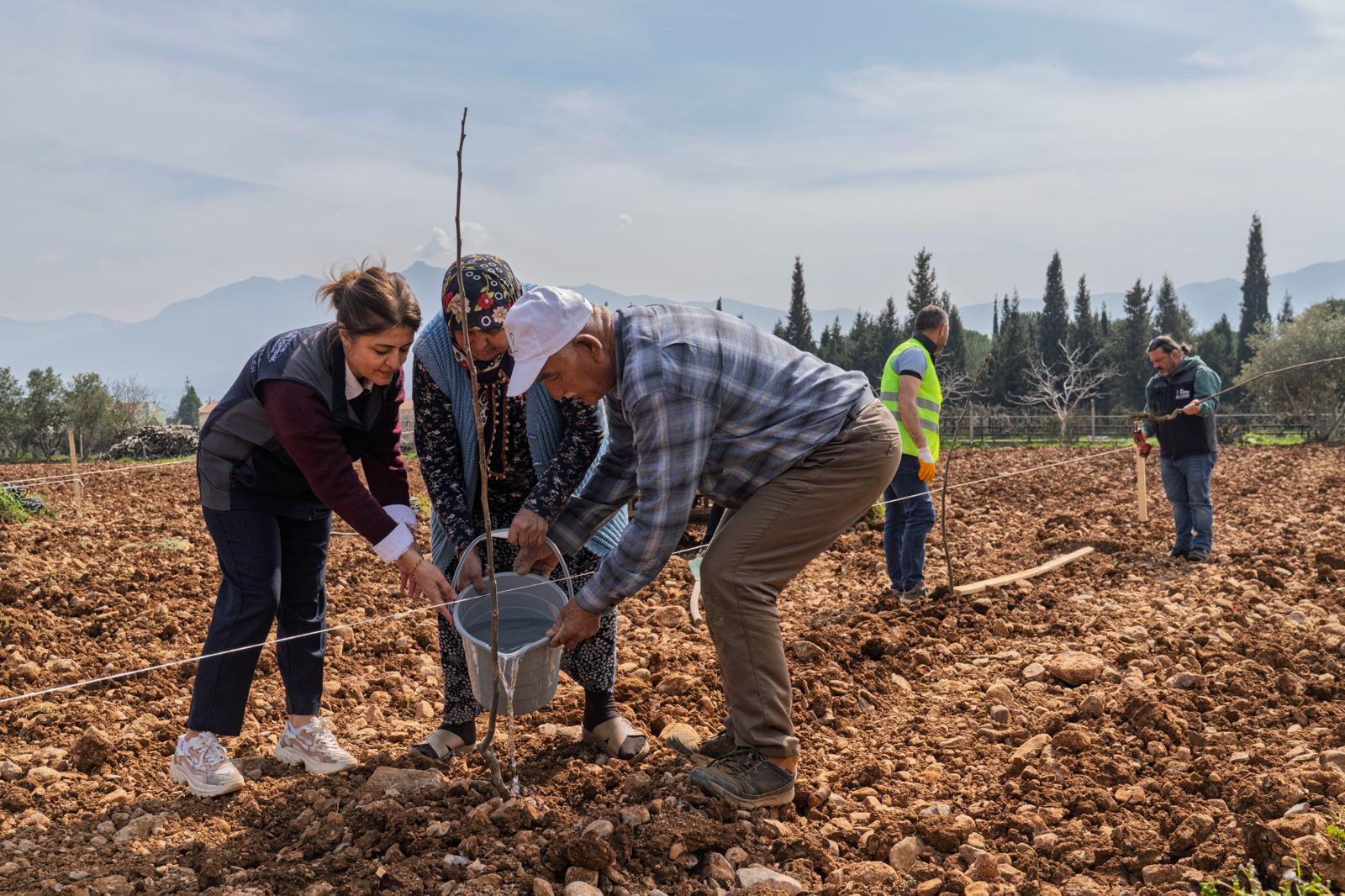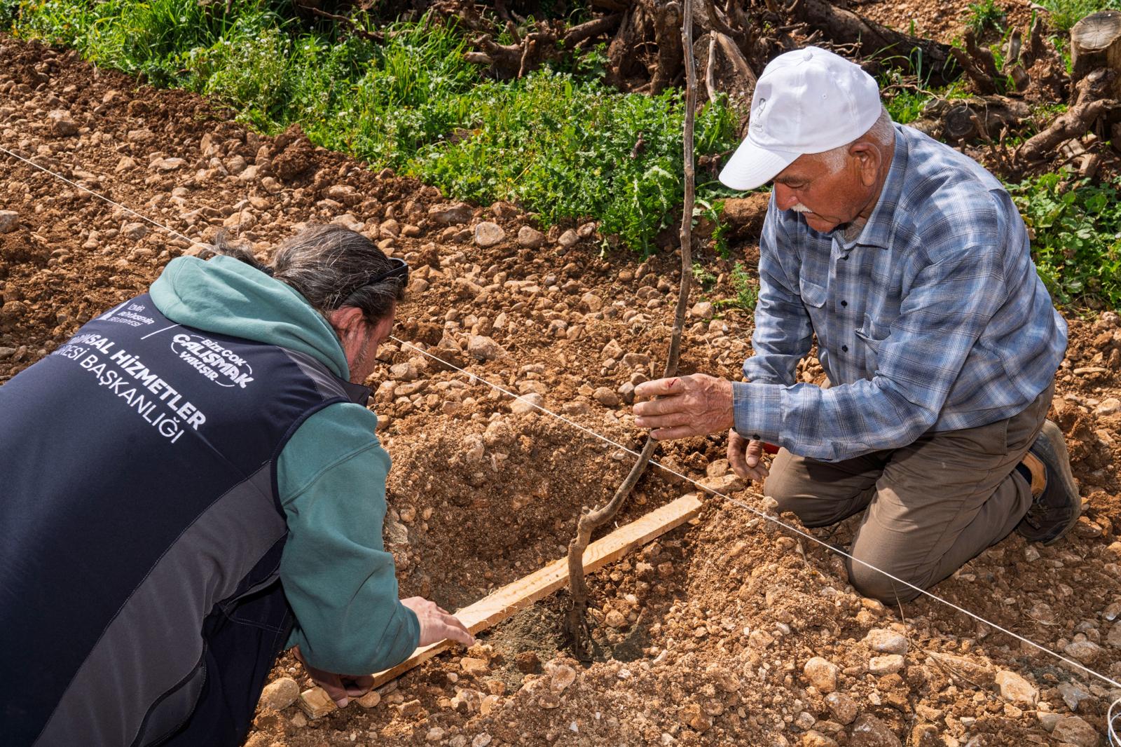 “Fidanlarla yanında olduk”Tarımsal Üretim Şube Müdürlüğü’nde görevli ziraat mühendisi Evrim Pınar Mak, “Maalesef yaşanan olay çok üzücüydü. Ahmet Bey, buradaki ağaçların dışarıdan bir müdahaleyle kesildiğini bize iletti. Biz de gelip yerinde inceleme yaptık. İncelemelerimizde yetişkin ceviz ağaçlarının kesildiğini gördük. Bu konuda nasıl destek olabileceğimizi kendisiyle görüştük. Çok üzgündü. Biz de yanında olduğumuzu ifade ettik ve zarar gören ağaçların yerine fidanlarımızla destek olacağımızı söyledik. Bugün de burada uygulamayı gerçekleştiriyoruz. 50 ceviz fidanını alana getirdik. Toprağın hazırlanması, çukurların açılması ve fidanların dikimi sürecinde de destek vererek fidanları toprakla buluşturduk” diye konuştu.Tarımsal Hizmetler Dairesi Başkanlığı olarak çiftçilerin yaşadığı zorluklarda üreticilerin yanında olduklarını belirten Evrim Pınar Mak, “Bizim için üretimin sürdürülebilir olması önemli. Ahmet Bey’in bu topraklarda üretmeye devam etmek istemesi de bizim için çok kıymetli” dedi.