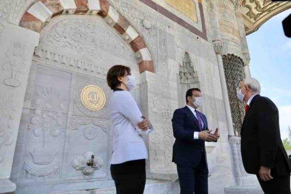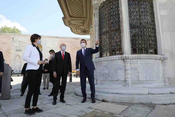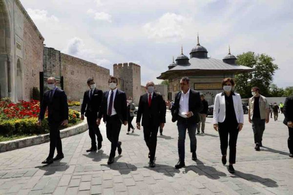 Cumhuriyet Halk Partisi (CHP) Genel Başkanı Kemal Kılıçdaroğlu, CHP İstanbul İl Başkanı Canan Kaftancıoğlu ve İstanbul Büyükşehir Belediye (İBB) Başkanı Ekrem İmamoğlu, sokağa çıkma yasağı nedeniyle tarihinin en boş zamanlarını yaşayan Tarihi Yarımada’da İstanbul turu attı. Kılıçdaroğlu, Kaftancıoğlu ve İmamoğlu, 30 yıl sonra musluklarından su akmaya başlayan 3. Ahmet Çeşmesi’nin tarihiyle ilgili İBB Kültür Varlıkları Daire Başkanı Mahir Polat’tan bilgi aldı. Üçlü, İstanbul’un sembol yapılarından Ayasofya Müzesi ve Halı Müzesi etrafında dolaşıp, Soğukçeşme Sokağı üzerinden Gülhane Parkı’na indi. Gülhane Parkı’nda çalışan Park ve Bahçeler Müdürlüğü işçileri ve güvenlik görevlilerinin bayramlarını kutlayan Kılıçdaroğlu, Kaftancıoğlu ve İmamoğlu, turlarını Sarayburnu’nda tamamladı. Kılıçdaroğlu, Kaftancıoğlu ve İmamoğlu, çalışma arkadaşlarıyla birlikte İstanbul Boğazı manzaralı anı fotoğrafı çektirdi.