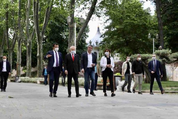 CHP Genel Başkanı Kemal Kılıçdaroğlu, CHP İl Başkanı Canan Kaftancıoğlu ve İBB Başkanı Ekrem İmamoğlu, pandemi nedeniyle ilan edilen sokağa çıkma yasağında boş kalan İstanbul sokaklarında incelemelerde bulundu. Tarihi Yarımada’yı yürüyerek dolaşan üçlü, Sultanahmet Meydanı’nda başlattıkları turu, Sarayburnu’nda noktaladı.