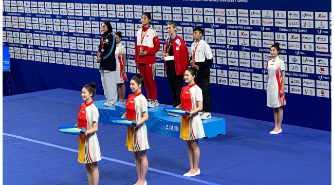 İzmir Büyükşehir Belediyesi Gençlik ve Spor Kulübü tekvandocusu Esra Akbulak, Çin'de düzenlenen 31’inci Dünya Üniversite Yaz Oyunları'nda eli kırılmasına rağmen bronz madalyanın sahibi oldu.